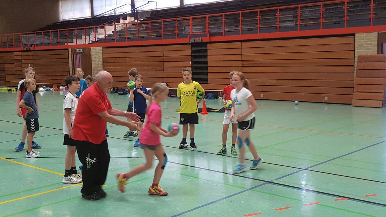 Freitag, 26.08.2016. Der letzte Tag. Mit einem lachenden und einem weinenden Auge fiebere ich dem letzten Tag entgegen. Auf der einen Seite bin ich erleichtert, dass die anstrengende Woche jetzt fast zu Ende ist; ich bin körperlich ziemlich k.o. und der mangelnde Schlaf macht sich schon teilweise bemerkbar, ABER: auf der anderen Seite hat diese Woche so viel Spaß gemacht, es wurden so viele neue Freundschaften geknüpft, alle Teilnehmer sind gesund und unversehrt geblieben – alles in allem ein sehr erfolgreiches Handballcamp neigt sich dem Ende. Am Vormittag mache ich mit den Kindern viel Koordination, alle sind sehr konzentriert bei der Sache, insbesondere an der Koordinationsleiter und um die „Pommes-Stäbe“ herum. Mit den „Großen“ trainieren wir Übergänge aus dem Rückraum unter Einbeziehung der Außenspieler mit Torabschluss. Dieser Vormittag geht wiederum vorbei wie im Fluge und auch an diesem letzten Tag ist das Gedränge an der Essenstheke sehr groß. Nach der Pause werden die Geschenke ausgegeben: jeder Teilnehmer und jede Teilnehmerin erhält eine Medaille und ein Erinnerungs-Tshirt, was alle schnell überstreifen, um das obligatorische Abschlussfoto zu schießen. Im Anschluss an das Fotoshooting steht traditionsgemäß das große Abschlussturnier auf dem Plan. Sämtliche Teilnehmer/innen werden auf 6 Teams aufgeteilt. Dieses Mal dürfen die „Jüngsten“ die Teams wählen – was für eine große Ehre. Sie sind ganz aufgeregt. Die Teams werden sehr homogen gewählt und als erstes muss sich jedes Team einen eigenen Namen ausdenken, was sich recht lustig gestaltet. Hier die fantasievollen Namen der 6 Teams: Käsekuchen, Pizzaschnitten, DAP, Schlümpfe, Chilischoten und 187Feldwegbande.