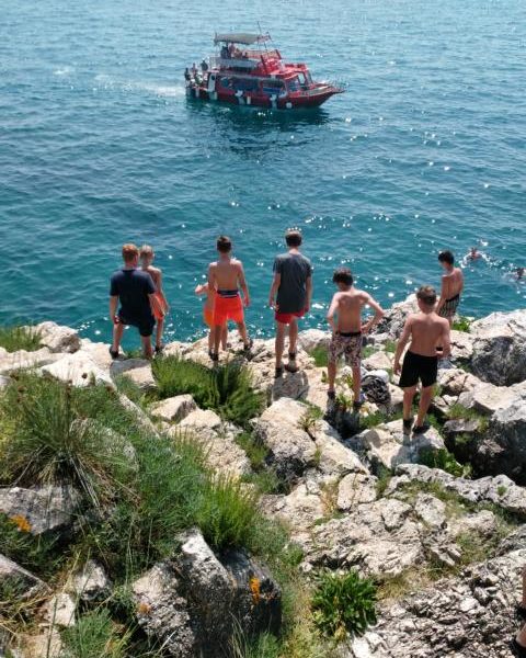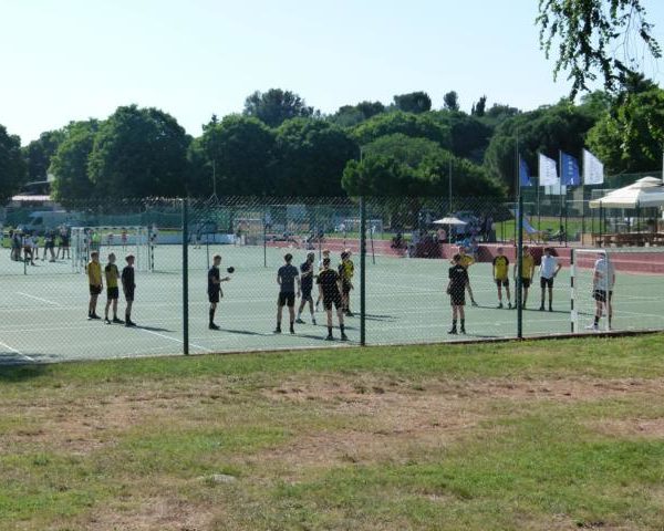 Wer mich kennt, weiß, dass es neben meiner Familie natürlich, zwei Dinge gibt, die mir besonders am Herzen liegen: zum einen ist es der Handballsport und hier insbesondere die Jugendförderung; zum anderen ist es die Liebe zu meiner Heimatstadt Rovinj in Kroatien. Und was liegt da näher, als diese beiden Dinge zusammen zu führen? Aus einer Idee wurde eine geplante Studienreise, umgesetzt im Juni diesen Jahres. Wir charterten zwei Kleinbusse für 13 Kindern und 5 Betreuer. Die erste Schwierigkeit, mit der wir zu kämpfen hatten, war die Unterbringung des Gepäcks. Weil man die Abreise aber kaum noch abwarten konnte, wurde dieses Problem schnell gelöst und schon konnte es losgehen. Nach 14 Stunden Fahrt wurde das traumhafte Ziel erreicht und es folgten wunderschöne 7 Tage. Genau zu diesem Zeitpunkt traf sich die Handballjugend der ganzen Welt in Rovinj zu einem internationalen Handball-Jugendcamp mit 600 Jugendlichen – perfekt! Wir konnten als Gäste mal dort reinschnuppern und freundeten uns mit dem Headcoach Ilija Puljevic an. Neben Handball stand auch etwas Kultur auf dem Programm, z.B. der Besuch der Kirche Sveta Eufemija und der Arena in Pula. Weiterhin wurden Bootsfahrten unternommen, z.B. nach der Insel Katarina, wo wir von den Klippen gesprungen sind usw.