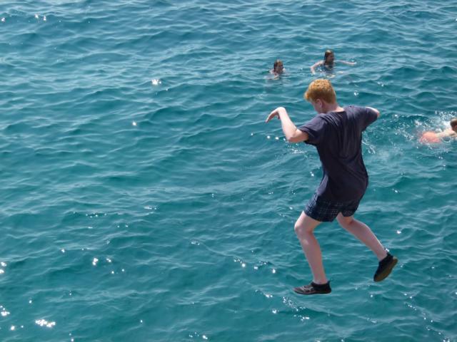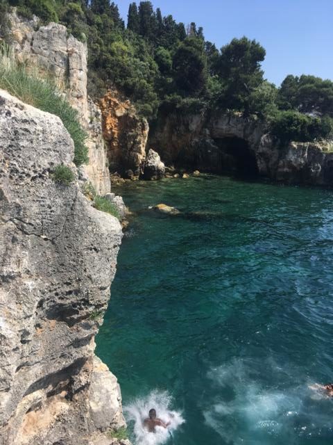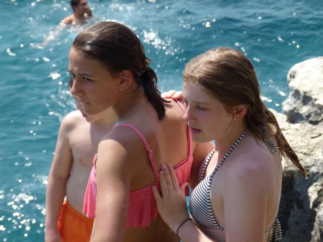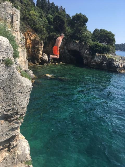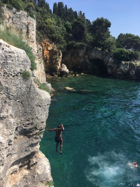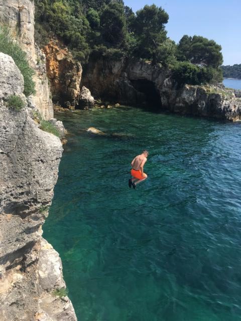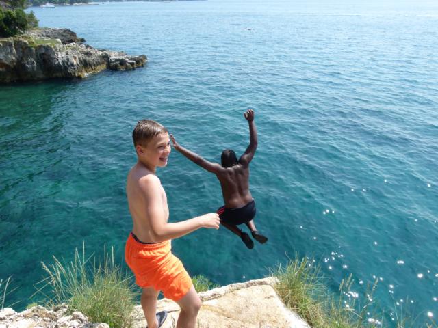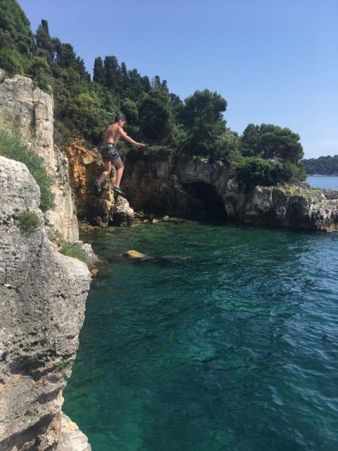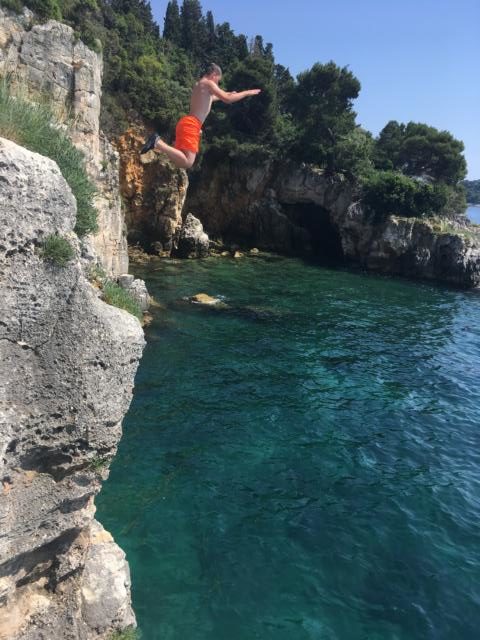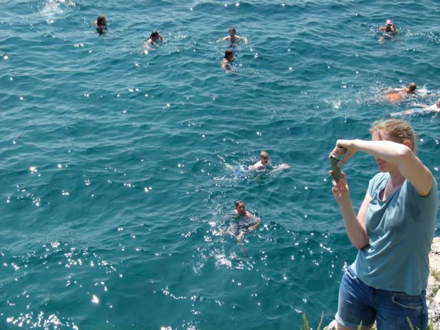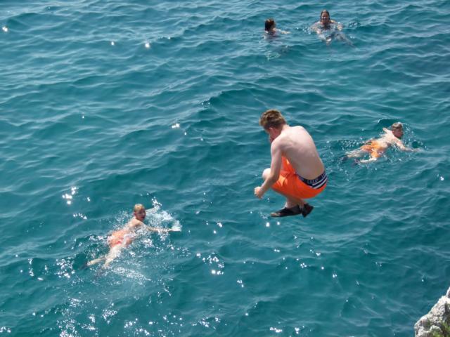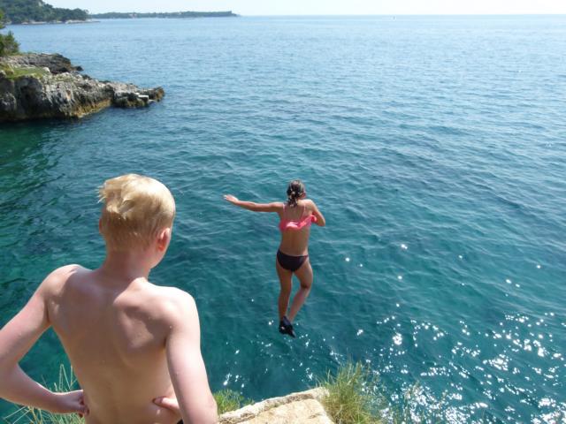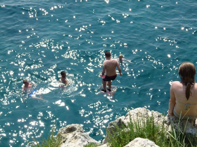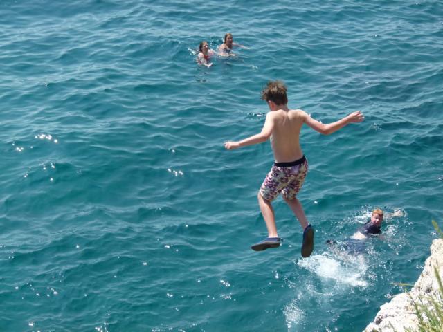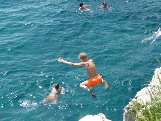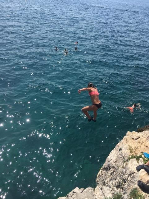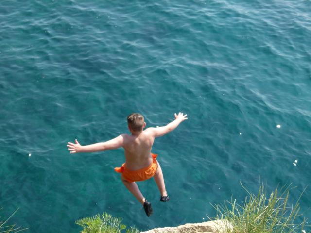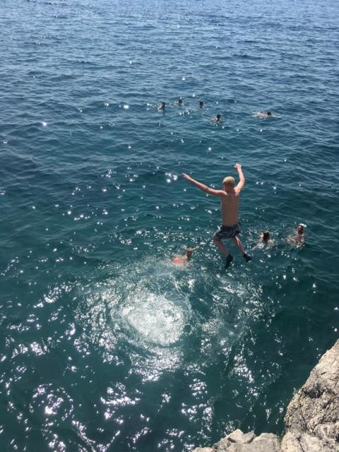 Die Klippen waren echt hoch. Zuerst sind wir von der niedrigeren Klippe gesprungen, die ca. 6 Meter hoch war. Nachdem wir uns an die Höhe gewöhnt hatten, sind wir eine Stufe höher gegangen. Dort war es ungefähr 8-12 Meter hoch. Als erstes hatte man etwas Angst, aber nach 1-2 Sprüngen hatte man einfach nur noch Lust weiter zu springen. Man bekam einen richtigen Adrenalinschub beim Springen. Es hat riesig viel Spaß gemacht. Am liebsten wären wir den ganzen Tag weiter gesprungen.