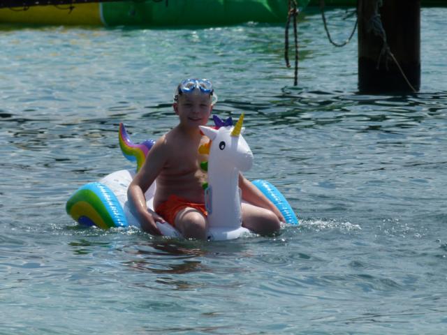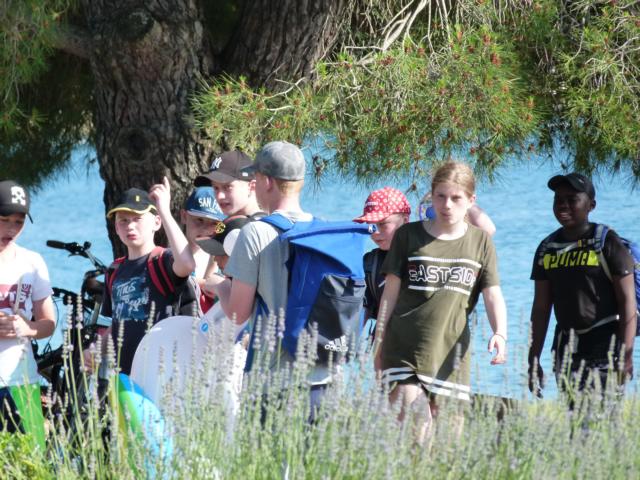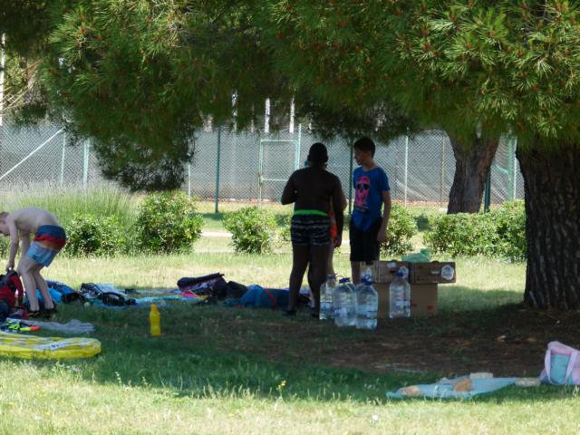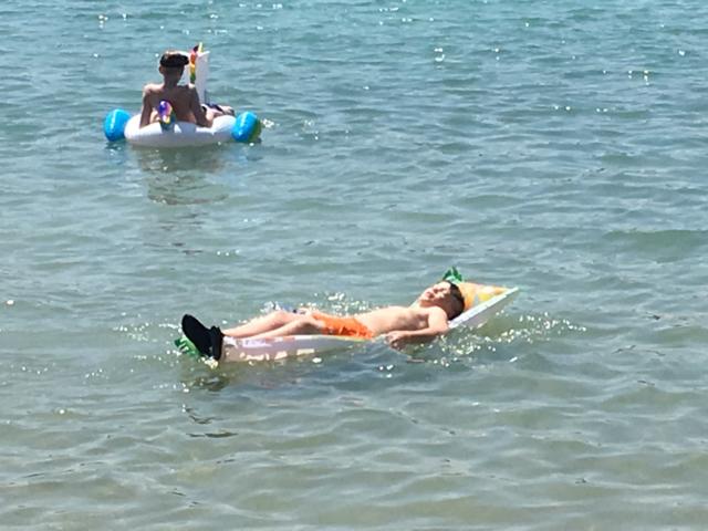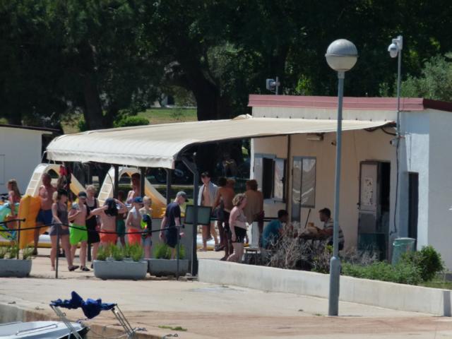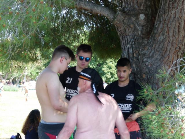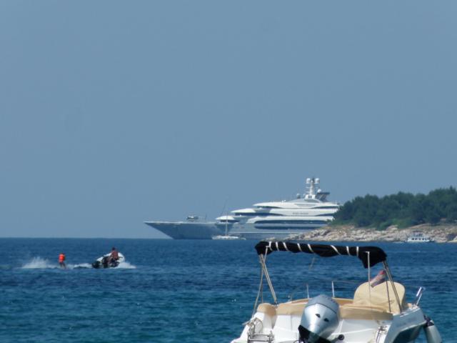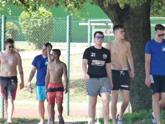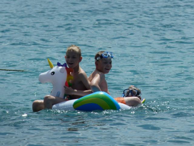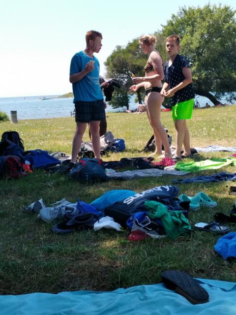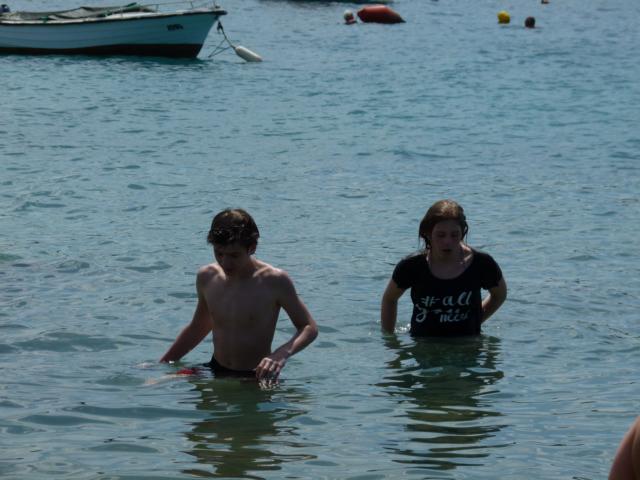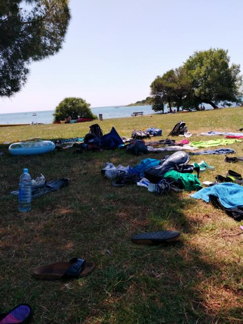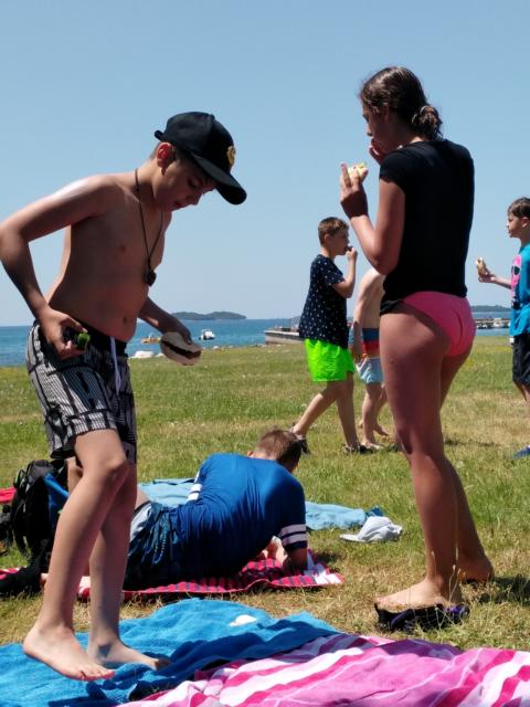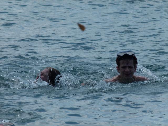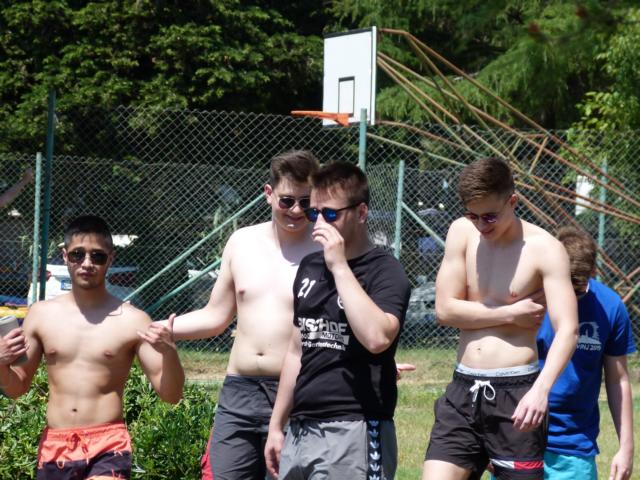 Am Dienstag fuhren wir direkt nach dem Frühstück nach Villas Rubin. Nachdem wir angekommen waren, machten wir uns fürs Schwimmen fertig. Wir kamen 5 Minuten später mit der in Pula gekauften Ananas-Luftmatratze, die wir aus Versehen im Wasser kaputt gemacht haben, zurück an Land, legten sie bei uns an den Platz und gingen wieder zurück ins Wasser. Um die Mittagszeit herum teilten wir uns in 3 Gruppen auf und liehen uns Tretboote, mit denen wir aufs Meer fuhren, aus. Da die Boote anmontierte Rutschen hatten und man super von ihnen aus springen konnte, hatten wir alle sehr viel Spaß. Wir endeckten, dass man sich super an die Tretboote hinten dran hängen konnte. Dabei konnte man super schnorcheln und sich dabei die schöne Unterwasserwelt anschauen. Nach einer halben Stunde kam das erste Boot wieder zurück an Land, weil sie am Anfang nicht gut aufgepasst hatten und daher nicht wussten, dass die Leihfrist eine Stunde betrug. Als die Stunde vergangen war, blieb die eine Gruppe unfreiwillig länger auf dem Wasser, da der Rudermechanismus sich verklemmt hatte und sie sich selbstständig nicht mehr bewegen konnten. Das andere Boot, was noch auf dem Wasser war, musste dem Bootsverleih Bescheid geben, dass die eine Gruppe, die auf dem Wasser festsaß, abgeschleppt werden musste. Die Gruppe, die noch ca. 20 Minuten im Wasser ziellos herumrumgetrieben war, mussten mit eigener Kraft gegen das Boot schwimmen, da sie sonst gegen eine große Yacht getrieben währen. Nachdem sie dann 10 Minuten später mit dem Motorboot abgeschleppt worden waren und sicher an Land gekommen waren, freuten sich alle wieder festen Boden unter den Füßen zu haben. Ein Teil der Mannschaft ging danach nochmal ins Wasser und die anderen spielten Basketball und schauten bei dem Handballcamp zu, was währenddessen stattfand. Müde führen wir nach Hause und ließen den Abend mit Fußball auf der Straße und ein paar Runden Werwolf ausklingen.