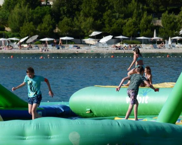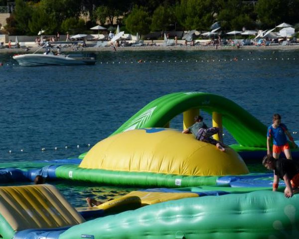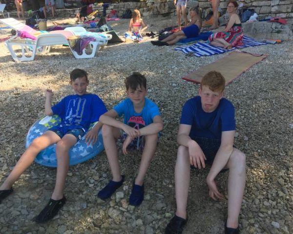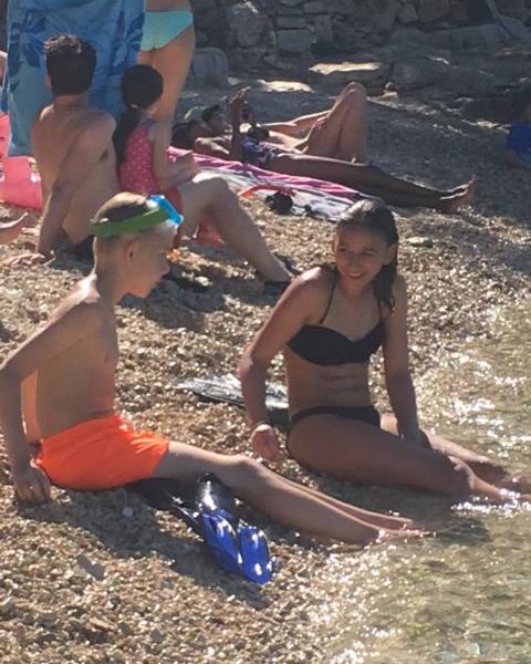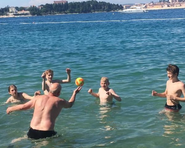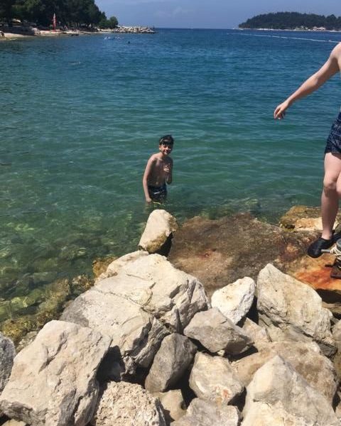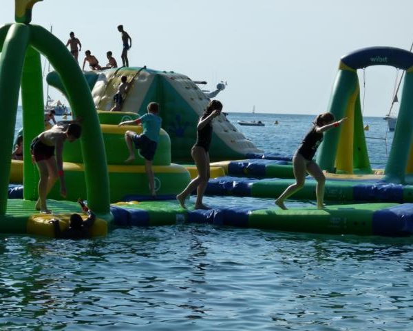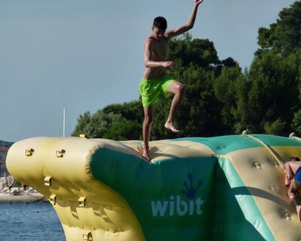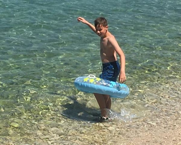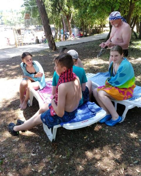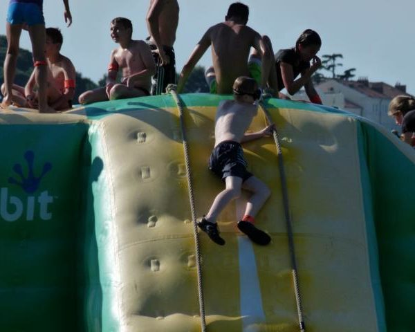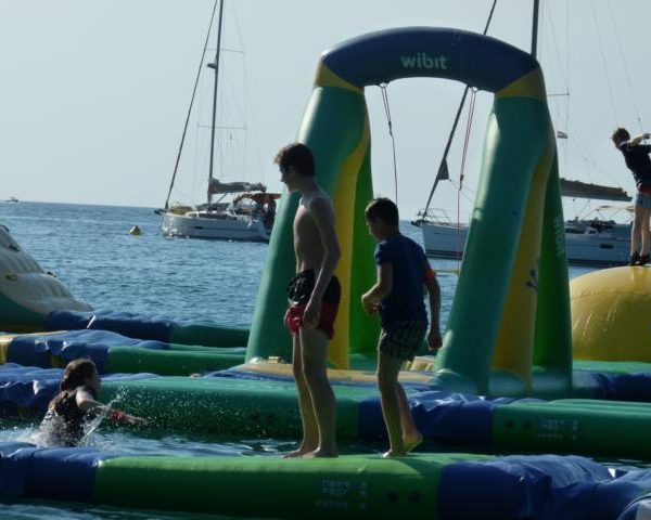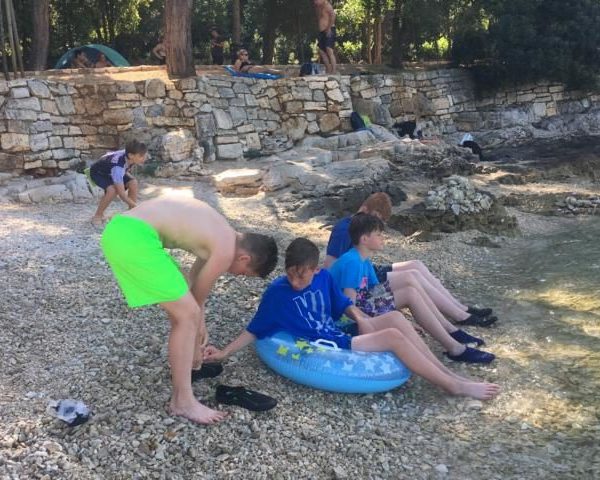 Wir sind mit dem Auto zum Parkplatz Punta Corrente gefahren, allerdings hatten wir noch ein gutes Stück zu Fuß zu laufen (Autofahrverbot) und so sind wir nach einer halben Stunde am Strand angekommen. Wir hatten eine Hüpfburg mitten im Meer gesehen und wollten unbedingt alle da drauf. Trainer und Betreuer ermöglichten uns die Riesengaudi und so verbrachten wir eine Stunde auf dieser Riesen-Wasser-Hüpfburg. Dort hatten wir so viel Spaß beim Klettern, Fangen-spielen und Ins-Wasser-springen, was bei dem einen oder anderen auch kleinere Blessuren hinterlassen hatte. Dann schlug Trainer vor, mehrere Spiele auf der großen Wiese zu spielen und wir bildeten Gruppen. Auf dem Programm stand: Fußball, Wikinger-Schach, Tischtennis-Rundlauf und Boccia. Das hat alles sehr viel Spaß gemacht. Erwähnenswert ist, dass beim Wikinger-Schach das „Damen-Team“ (bestehend aus Liv und Chiara sowie den Betreuerinnen Joni, Kerstin und Sonja) gewonnen hat. Um uns wieder etwas abzukühlen, sind wir zurück zum Kiesstrand gegangen, haben Melone und Eis gegessen und im Wasser Volleyball gespielt. Danach dürften wir alle noch im Meer schnorcheln – unter Wasser gab es jede Menge interessante Muscheln (z.B. große Steckmuscheln, genannt „Store“ – die stecken bis zur Hälfte im Sand) und Fische sowie Seeigel und Seegurken zu beobachten und nach einem ereignisreichen Tag sind wir müde nach Hause gefahren.