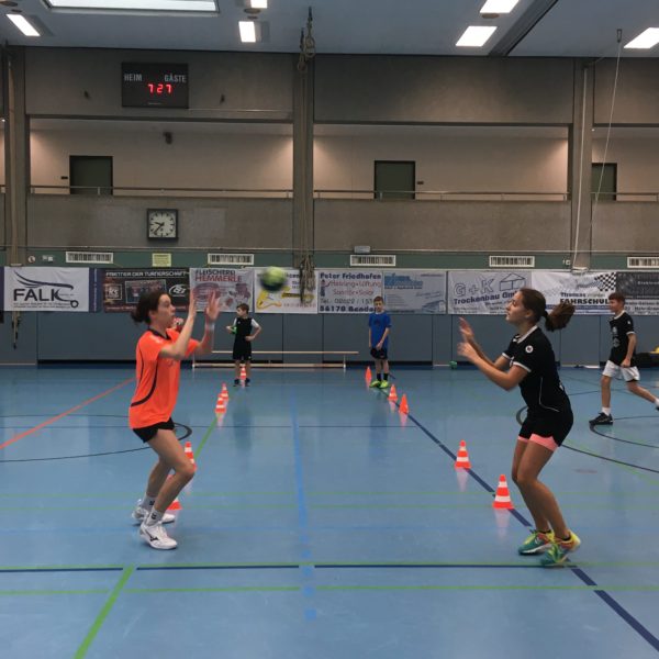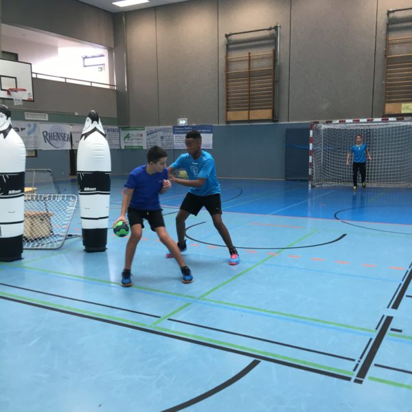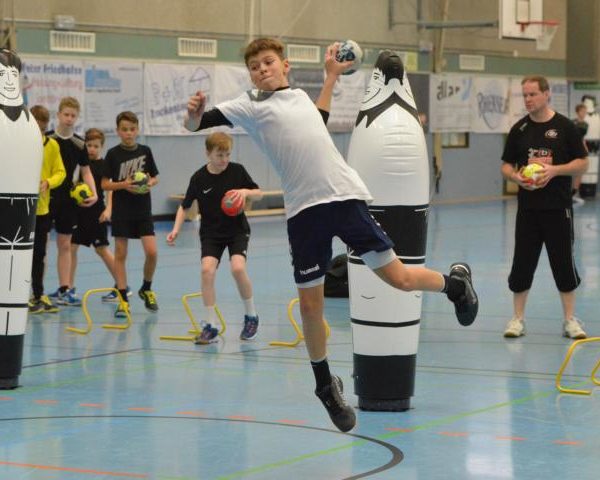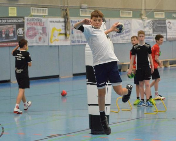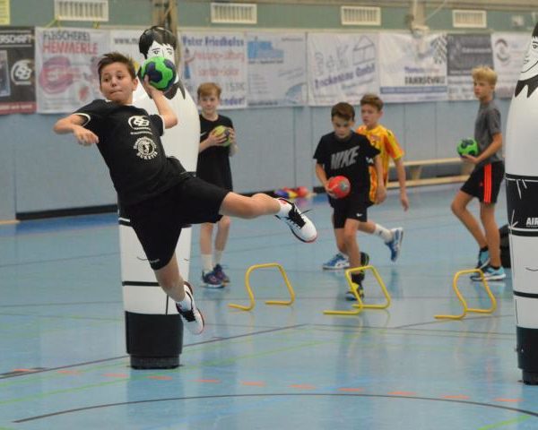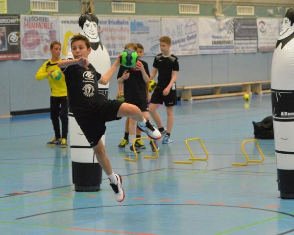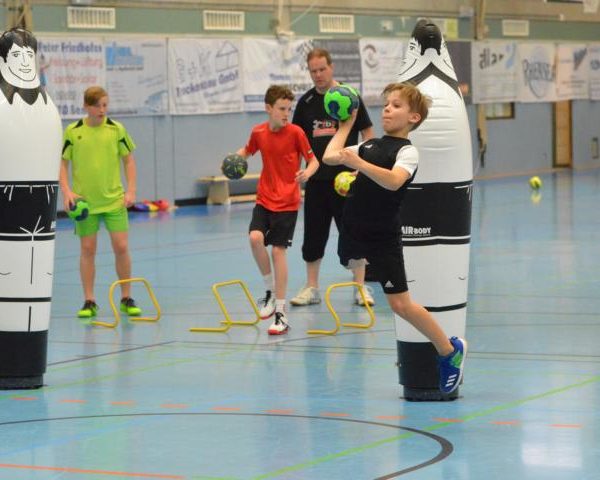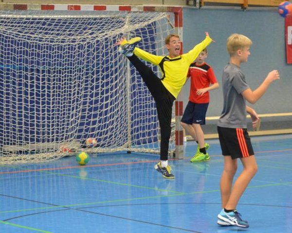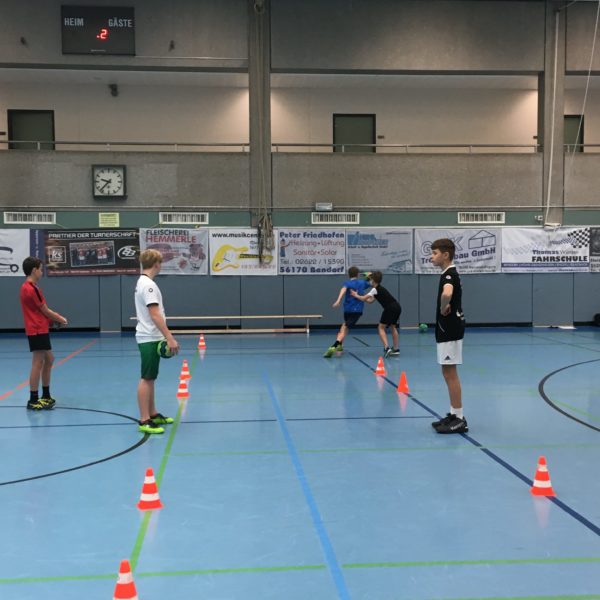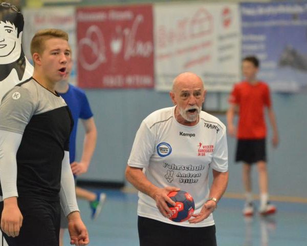 Kaum bin ich in Bendorf angekommen, empfängt mich schon mein guter Freund Paul, das Organisations-Talent. Wir begrüßen uns herzlich und erwarten gemeinsam die Camp-Teilnehmer, die nun nach und nach in der Sporthalle eintrudeln. Es sind Handballer dabei, die bereits seit der D-Jugend kommen und inzwischen A-Jugendliche sind – dementsprechend ist das „Hallo“ groß. Aber es sind auch wieder viele „neue“ Gesichter dabei, die erwartungsvoll schauen und endlich anfangen möchten. Während der Begrüßung und Einführungsrede kommt auch prompt die Frage, die ich schon insgeheim erwartet hatte: „Aber dieses Mal machen wir doch zum Abschied wieder das Hochsprung-Wettspringen, oder?“ Dazu muss ich erläutern, dass wir dieses „Wettspringen“ im vorletzten Jahr eingeführt haben, im letzten Jahr jedoch lief mir in der letzten Trainingseinheit die Zeit davon (wo war die bloß geblieben???) und wir konnten diesen Wettkampf nicht mehr durchführen. Ich hatte ein Jahr lang (also fast) ein schlechtes Gewissen und wurde gleich in den ersten Minuten damit konfrontiert…. geschieht mir ganz recht. Aber nachdem ich mein Versprechen gegeben habe, dass wir dieses Mal ganz bestimmt wieder den Hochsprung-Wettkampf durchführen – übrigens mit dem Trampolin über die große Weichmatte – waren alle beruhigt und es konnte endlich losgehen. Es wurden zu Beginn 4 Stationen aufgebaut, die Anforderungen stellten an die Koordination, an die Balancefähigkeit, die Körperstabilisation und auch eine gute Balltechnik war gefragt. Anschließend ging es im Spiel 3 gegen 3 um Schnelligkeit, Passgenauigkeit und die Schulung des Auges für den „freien Mitspieler“. Dann war auch schon Zeit zum Mittagessen gekommen. Nach der Mittagspause freuten sich alle auf das Üben der Balltechnik und die Schulung zur Verbesserung der Wurftechnik. Anhand der Fotos kann man erkennen, dass hier mit viel Eifer und Ehrgeiz trainiert wurde. Aber hier und da musste ich eingreifen und korrigieren, was die Nachwuchshandballer sogleich annahmen und sofort versuchten umzusetzen und mit der Nachfrage „ist es jetzt besser?“ eine Bestätigung suchten. Das nenne ich Kritikfähigkeit und so macht das Trainieren auch Riesenspaß. Weil manche Übungen nach verbaler Erklärung nicht verstanden wurden, musste ich auch mal wieder richtig aktiv werden und die Übungen auch visuell darbieten. Ich hoffte insgeheim, dass ich die kommende Nacht ohne Muskelkrämpfe überstehen würde und dass sich der Muskelkater hoffentlich in Grenzen halten würde. Aber mein Einsatz lohnte sich, alle waren sprachlos, dass so ein „alter Mann“ noch so gut mit dem Ball umgehen kann. H A L L O ? Was heißt denn hier „alter Mann“? Ich werde es euch schon zeigen – morgen – sollte ich diesen erleben….
