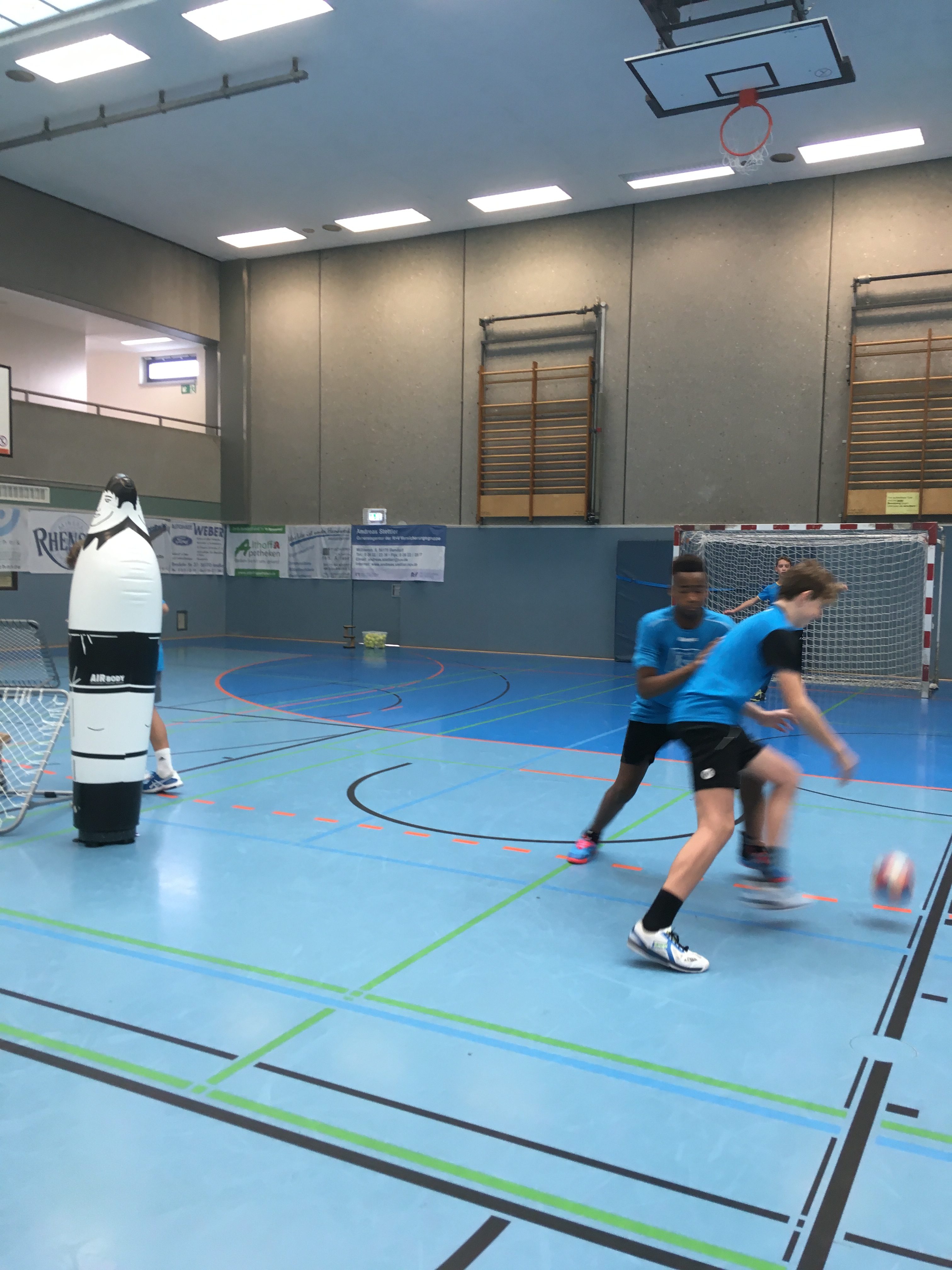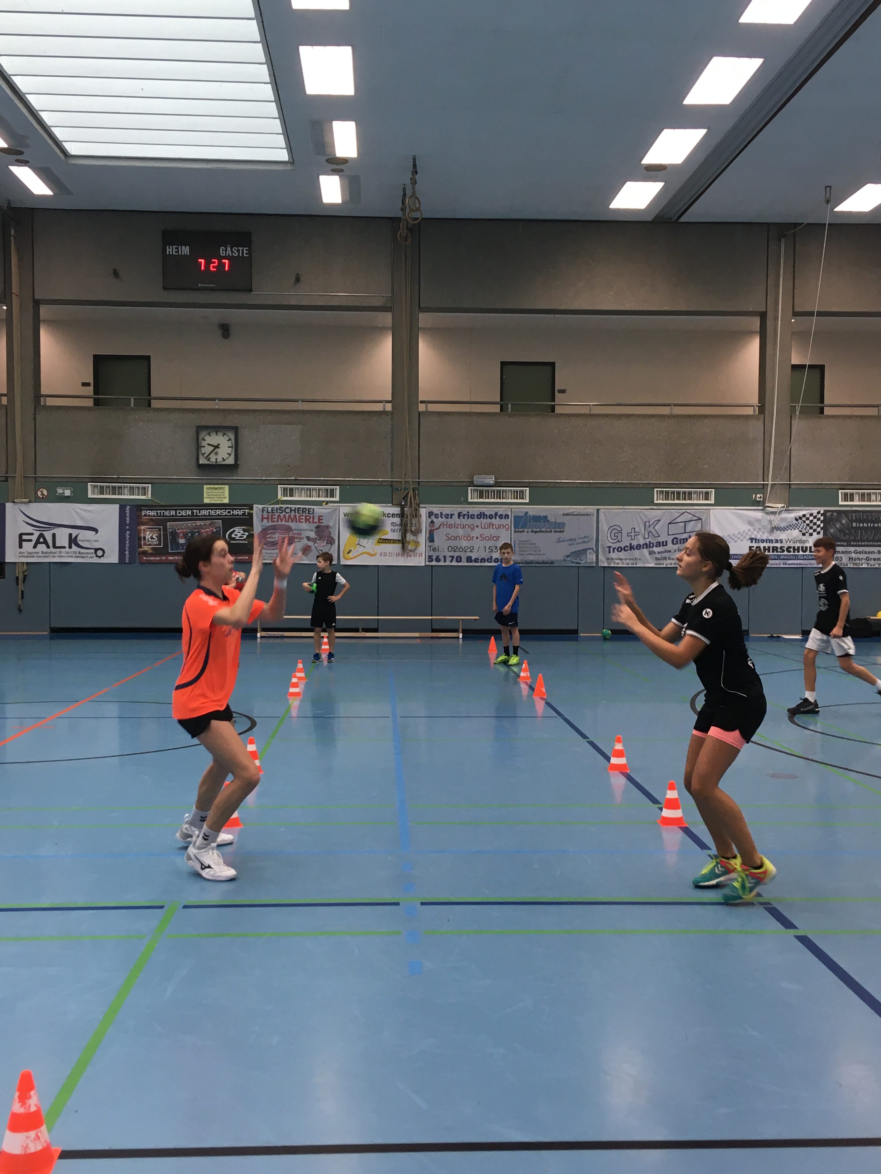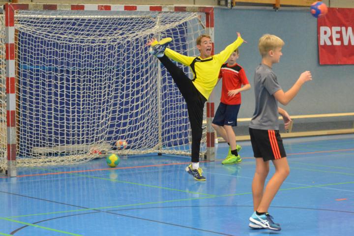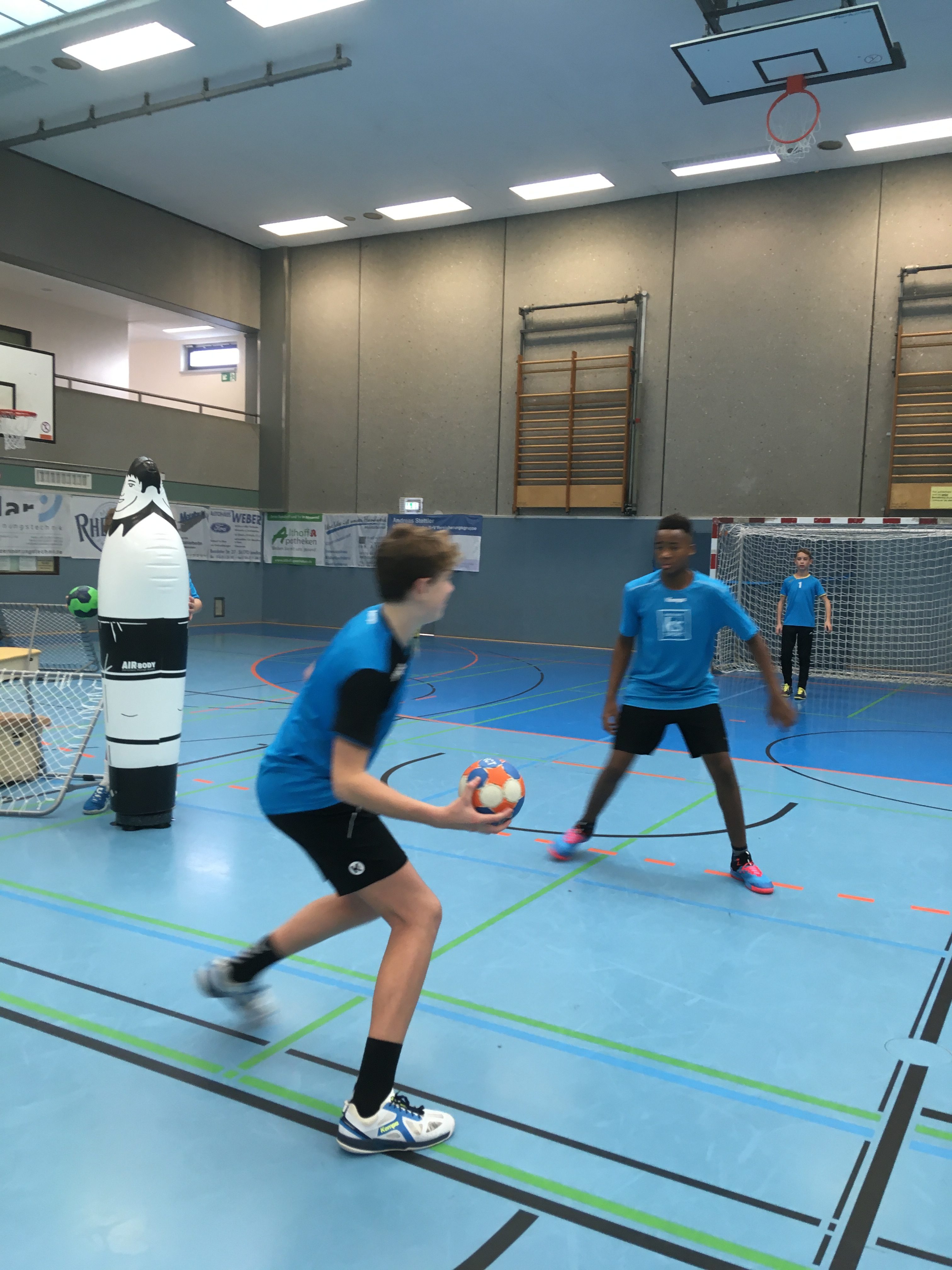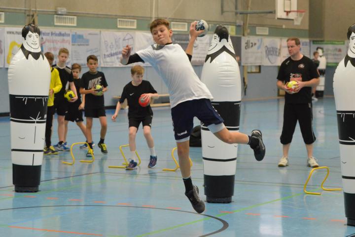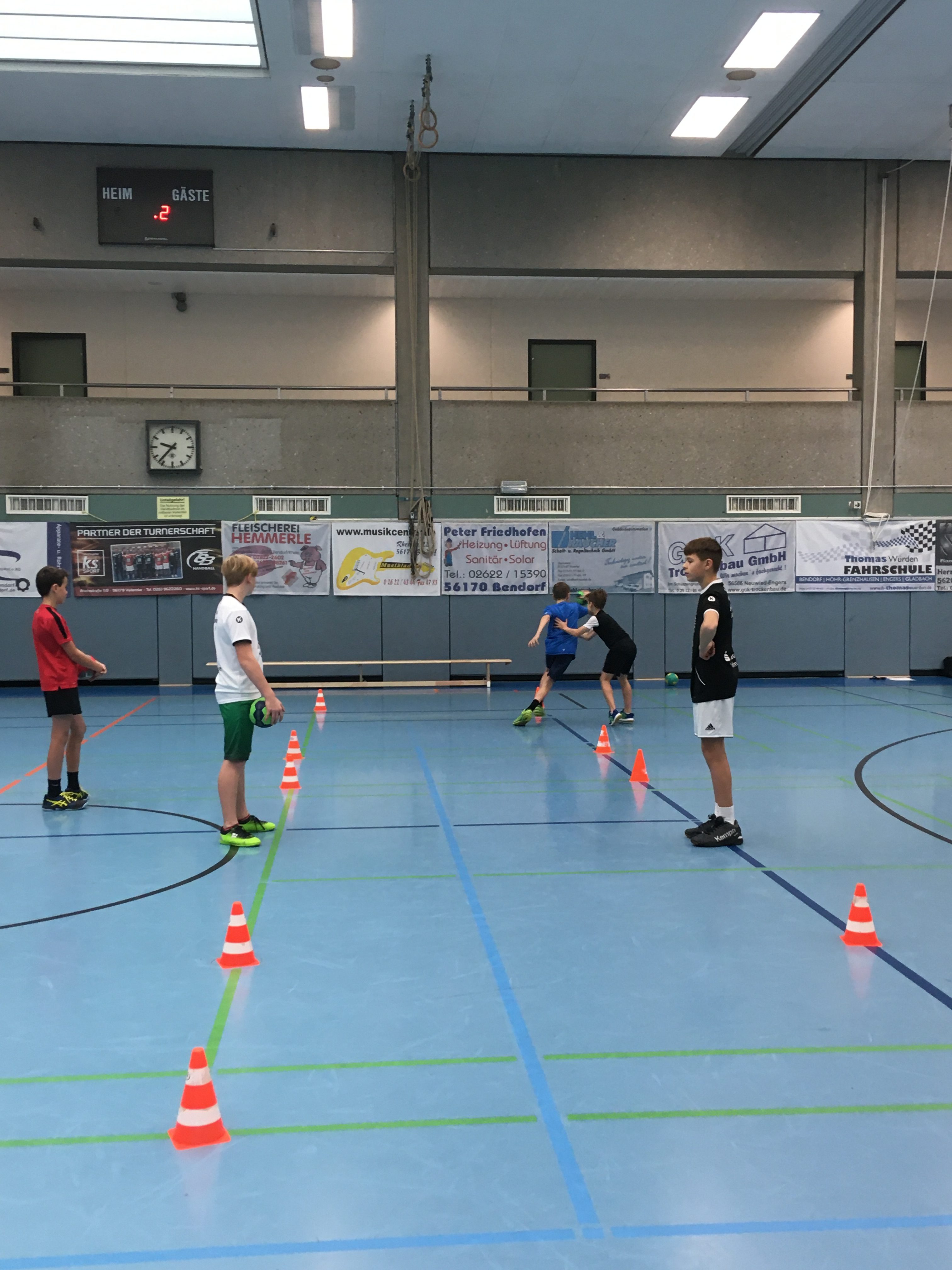 Kaum bin ich in Bendorf angekommen, empfängt mich schon mein guter Freund Paul, das Organisations-Talent. Wir begrüßen uns herzlich und erwarten gemeinsam die Camp-Teilnehmer, die nun nach und nach in der Sporthalle eintrudeln. Es sind Handballer dabei, die bereits seit der D-Jugend kommen und inzwischen A-Jugendliche sind – dementsprechend ist das „Hallo“ groß. Aber es sind auch wieder viele „neue“ Gesichter dabei, die erwartungsvoll schauen und endlich anfangen möchten. Während der Begrüßung und Einführungsrede kommt auch prompt die Frage, die ich schon insgeheim erwartet hatte: „Aber dieses Mal machen wir doch zum Abschied wieder das Hochsprung-Wettspringen, oder?“ Dazu muss ich erläutern, dass wir dieses „Wettspringen“ im vorletzten Jahr eingeführt haben, im letzten Jahr jedoch lief mir in der letzten Trainingseinheit die Zeit davon (wo war die bloß geblieben???) und wir konnten diesen Wettkampf nicht mehr durchführen. Ich hatte ein Jahr lang (also fast) ein schlechtes Gewissen und wurde gleich in den ersten Minuten damit konfrontiert…. geschieht mir ganz recht. Aber nachdem ich mein Versprechen gegeben habe, dass wir dieses Mal ganz bestimmt wieder den Hochsprung-Wettkampf durchführen – übrigens mit dem Trampolin über die große Weichmatte – waren alle beruhigt und es konnte endlich losgehen. Es wurden zu Beginn 4 Stationen aufgebaut, die Anforderungen stellten an die Koordination, an die Balancefähigkeit, die Körperstabilisation und auch eine gute Balltechnik war gefragt. Anschließend ging es im Spiel 3 gegen 3 um Schnelligkeit, Passgenauigkeit und die Schulung des Auges für den „freien Mitspieler“. Dann war auch schon Zeit zum Mittagessen gekommen. Nach der Mittagspause freuten sich alle auf das Üben der Balltechnik und die Schulung zur Verbesserung der Wurftechnik. Anhand der Fotos kann man erkennen, dass hier mit viel Eifer und Ehrgeiz trainiert wurde. Aber hier und da musste ich eingreifen und korrigieren, was die Nachwuchshandballer sogleich annahmen und sofort versuchten umzusetzen und mit der Nachfrage „ist es jetzt besser?“ eine Bestätigung suchten. Das nenne ich Kritikfähigkeit und so macht das Trainieren auch Riesenspaß. Weil manche Übungen nach verbaler Erklärung nicht verstanden wurden, musste ich auch mal wieder richtig aktiv werden und die Übungen auch visuell darbieten. Ich hoffte insgeheim, dass ich die kommende Nacht ohne Muskelkrämpfe überstehen würde und dass sich der Muskelkater hoffentlich in Grenzen halten würde. Aber mein Einsatz lohnte sich, alle waren sprachlos, dass so ein „alter Mann“ noch so gut mit dem Ball umgehen kann. H A L L O ? Was heißt denn hier „alter Mann“? Ich werde es euch schon zeigen – morgen – sollte ich diesen erleben….