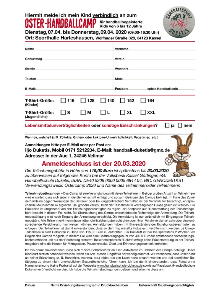 Auf geht’s ins Ostercamp in die Sporthalle Harleshausen!
