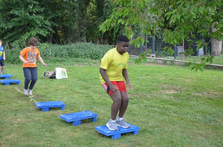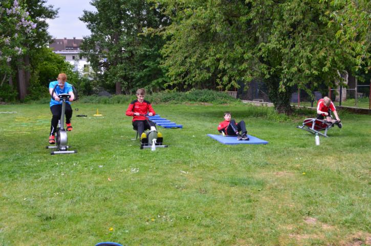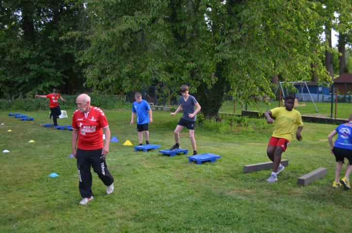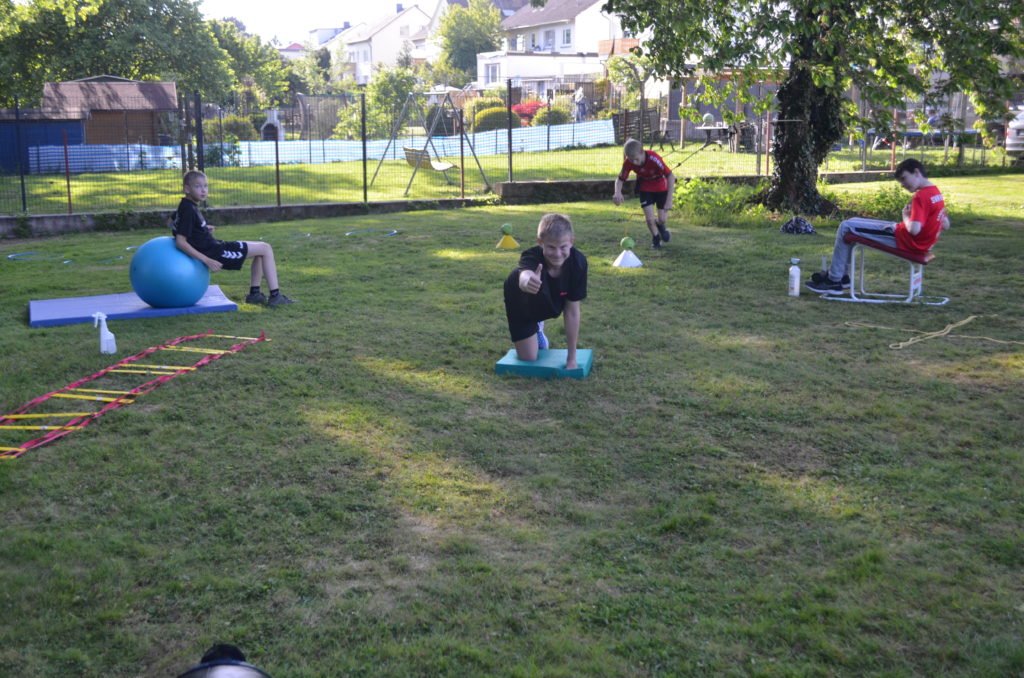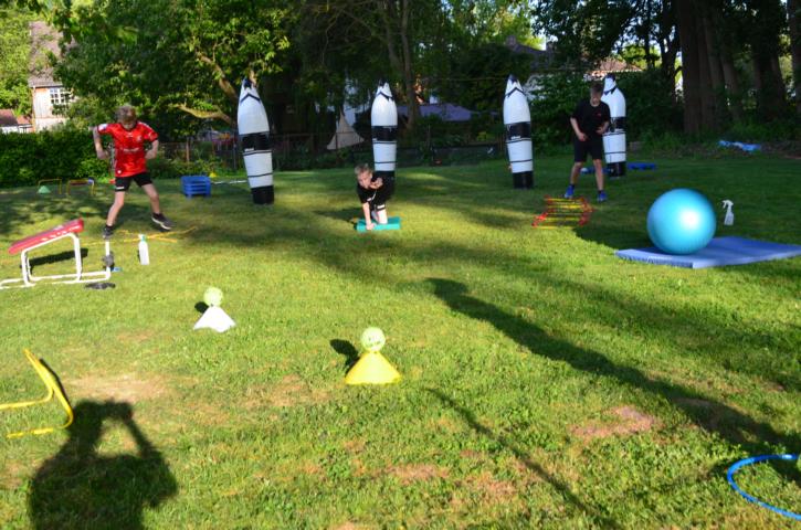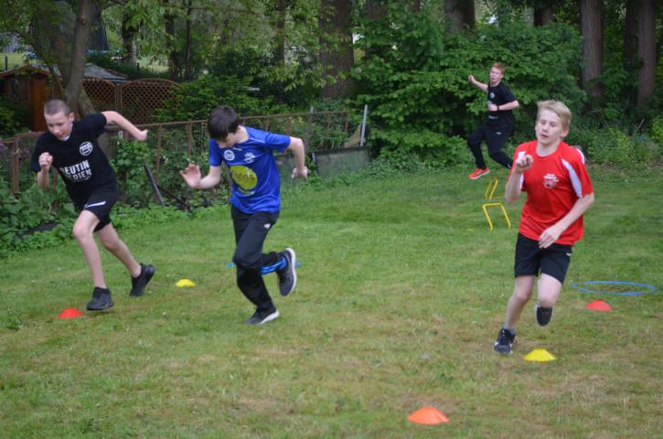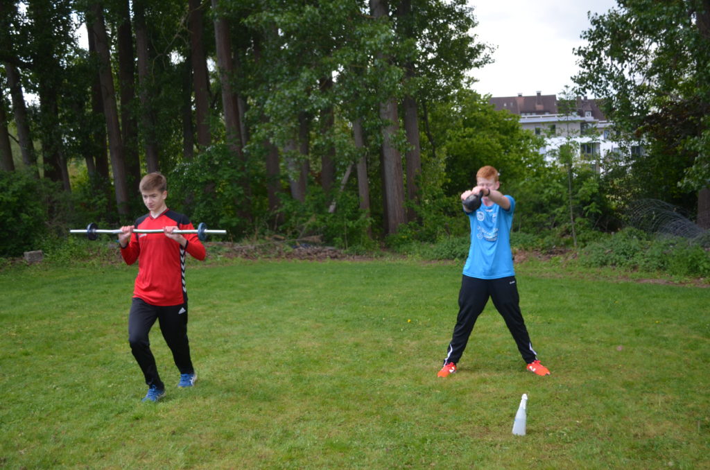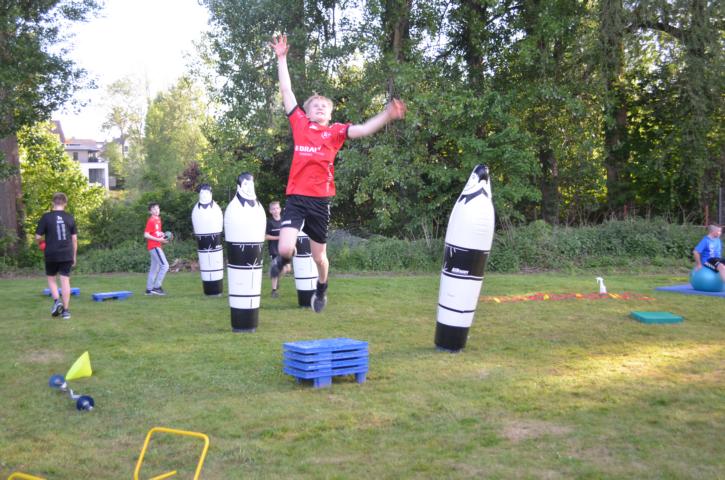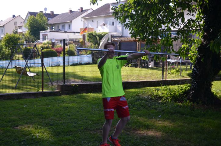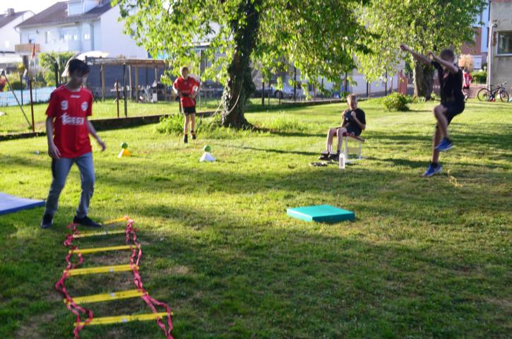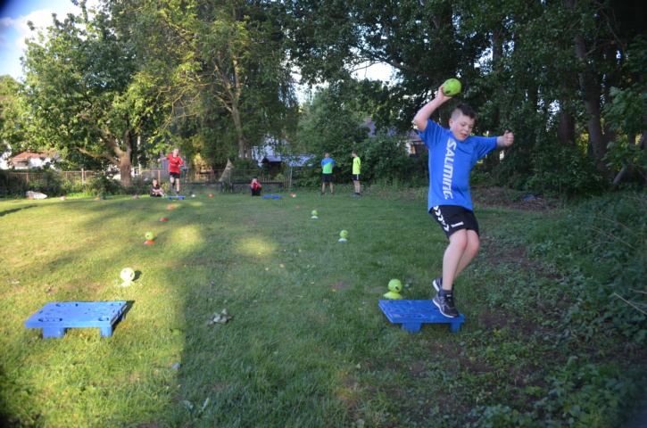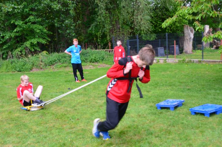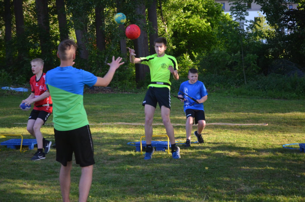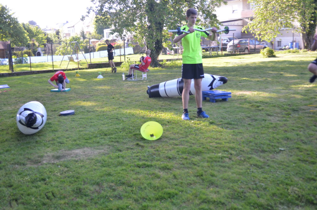 Das Üben unter erschwerten Bedingungen ist sinnvoll, da die Spieler sich im eigentlichen Spiel dann umso leichter tun. Bezogen auf den Sprungwurf ist es deshalb besonders hilfreich, Hindernisse einzusetzen, gegen welche sich die Spieler durchsetzen müssen. Bei mir im Garten kommen hier die Trainingsbuddies und die Power-Bungee-Gurte zum Einsatz sowie kleinere Hindernisse auf dem Rasen.