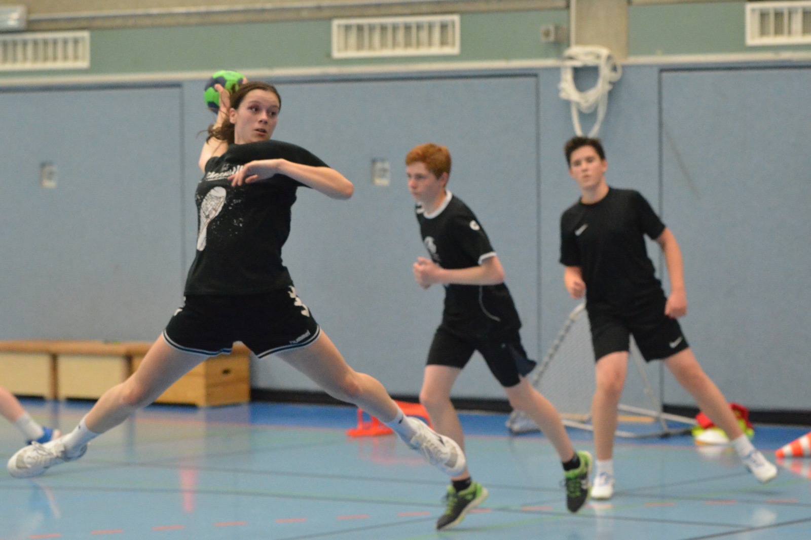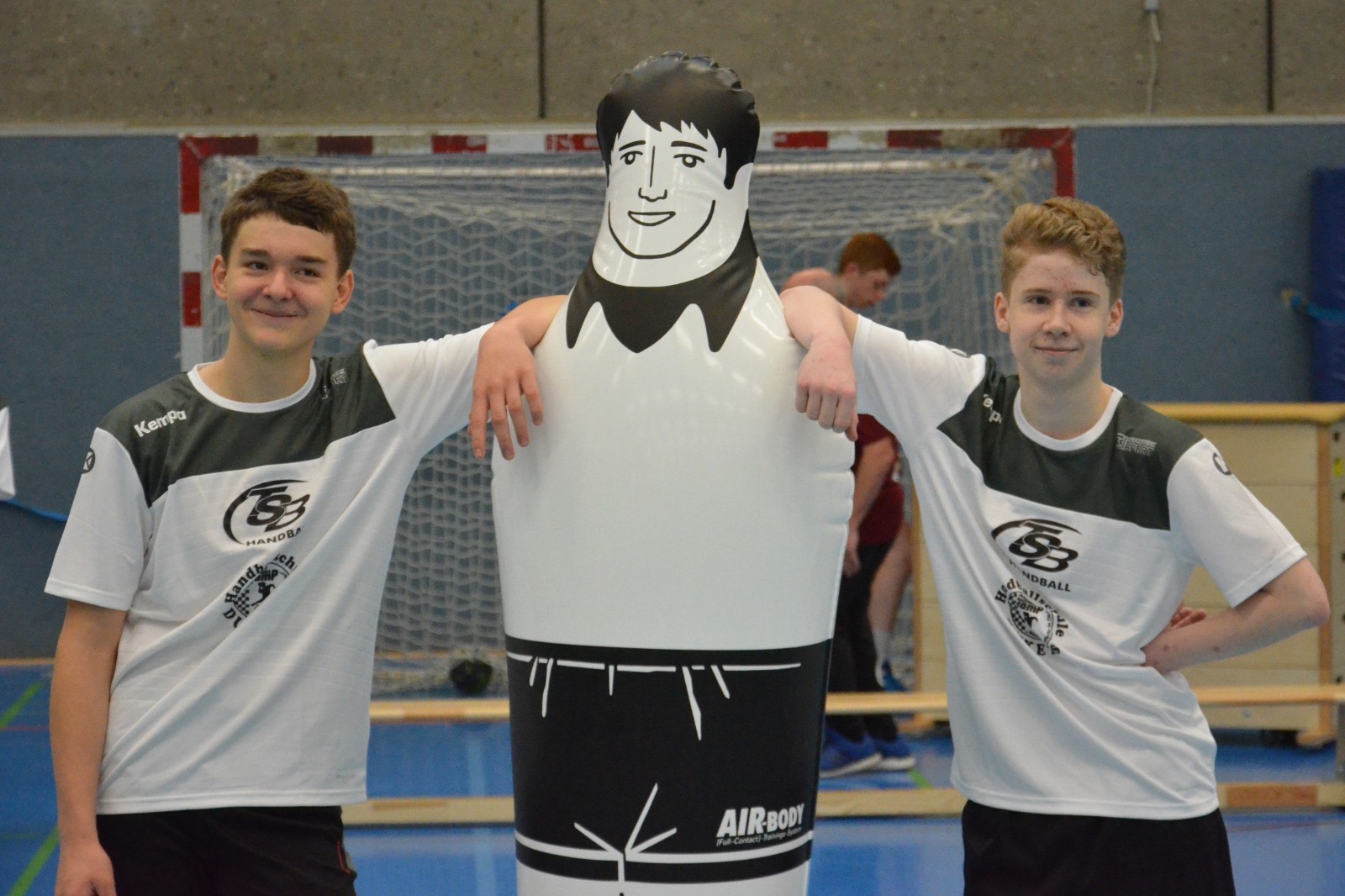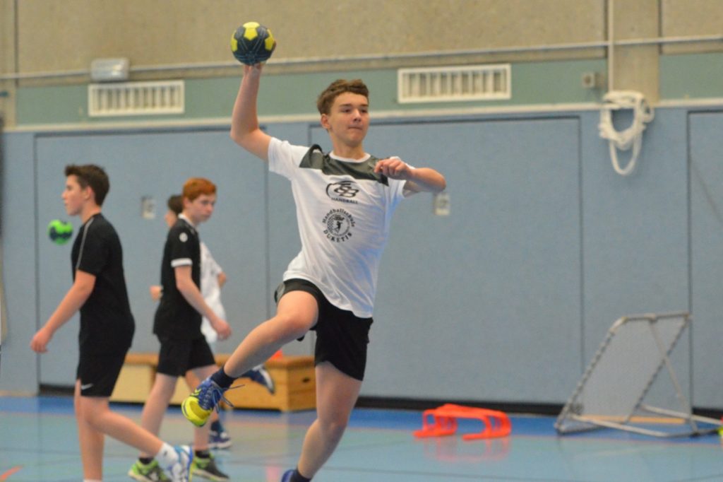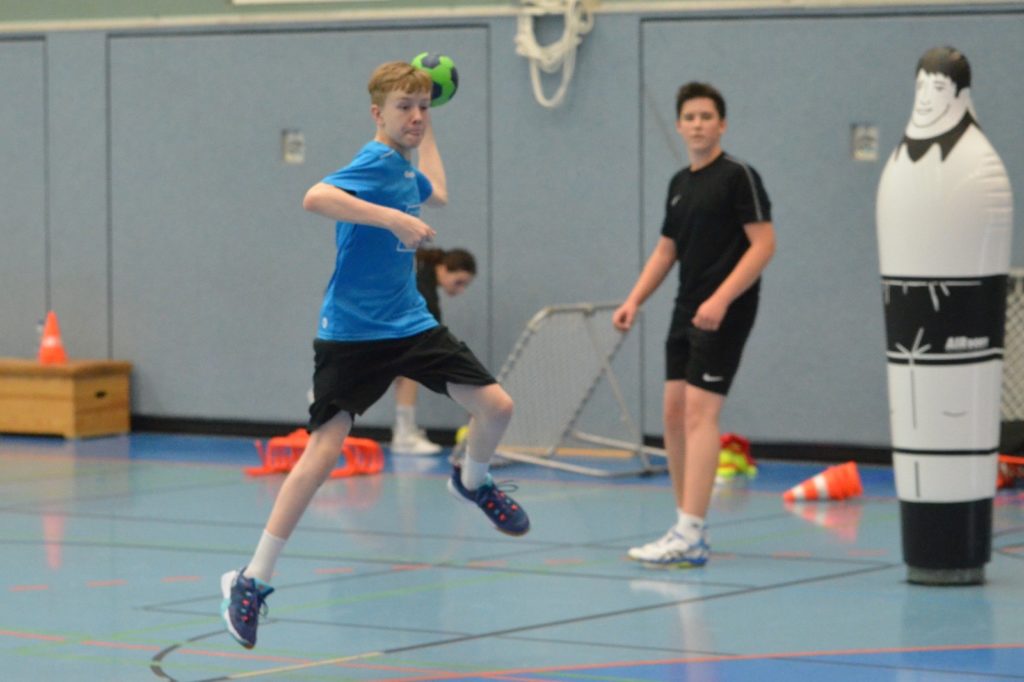Jetzt geht es zum Mittagessen, anschließend steht das Fotoshooting auf dem Programm. Hier müssen alle viel Geduld zeigen, denn ein perfektes Abschlussfoto ist oft nicht so leicht zu „schießen“. Aber als das schließlich im Kasten ist, steht ein weiterer sehr spannender Punkt auf dem Programm: Wurfkraftmessung in Wettkampfform und Wurftraining gegen Torwarte der 1. Herren-Mannschaft. Ja, das freut mich sehr, dass sich die Torleute von TS Bendorf hierfür zur Verfügung stellen. Es gibt eine 7-Meter-Serie und auch Sprungwürfe von der 9-Meter-Linie. Hier ist schnell der Ehrgeiz geweckt – natürlich auf beiden Seiten!