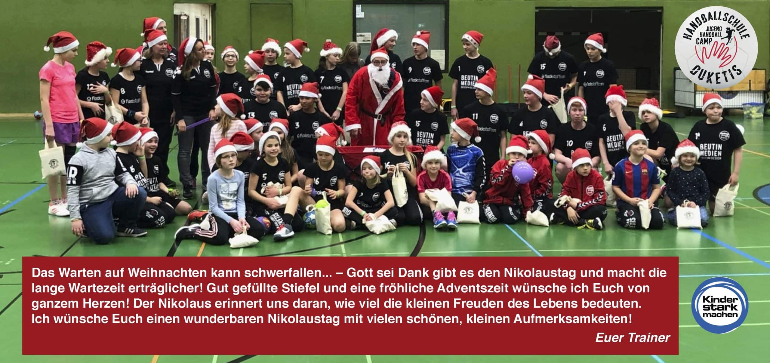 auch wenn wir uns momentan nicht sehen können, denke ich sehr oft an Euch und hoffe, es geht Euch gut und Ihr kommt gut durch die schwere Zeit. Ich sende Euch einen kleinen Nikolausgruß und kann es kaum erwarten, dass wir wieder gemeinsam Zeit verbringen und unsere geliebte Sportart Handball trainieren dürfen. Sobald es möglich ist, ein Handballcamp durchzuführen, bekommt Ihr Bescheid!