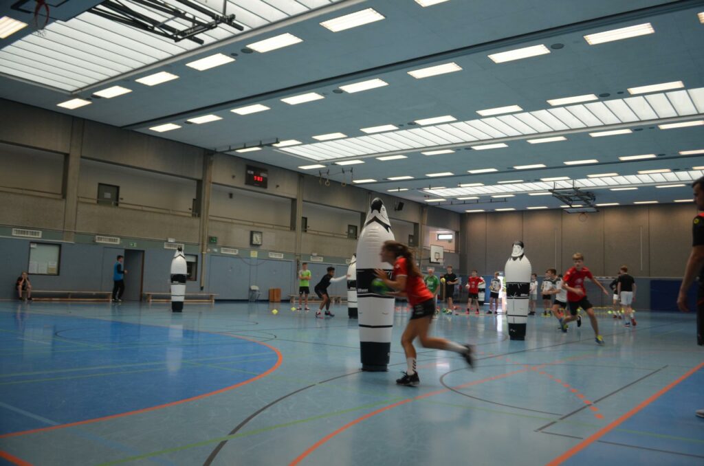 Der Jugendleiter von TS Bendorf hatte mich kurzfristig kontaktiert und nachgefragt, ob ich Interesse hätte, an dem Sommer-Handballcamp in Bendorf als Chef-Coach teilzunehmen. Bislang fand das Handballcamp in Bendorf (bei Koblenz) immer in den Herbstferien statt. Seit nunmehr 11 Jahren bin ich dort als Chef-Coach aktiv und wunderte mich, warum das Camp nun im Sommer stattfindet. Das kam so, weil die Kinder lange Zeit zum Nichtstun verdonnert wurden, da das Ostercamp Corona-bedingt ausfallen musste und die Kids einiges nachzuholen hätten. Da waren sie bei mir natürlich genau an der richtigen Adresse. Nichts hätte mich davon abhalten können, nach Bendorf zu fahren. Zwischen meinen beiden eigenen Sommer-Handballcamps, in Harleshausen vom 16.-20.08.21 und auf dem Sensenstein vom 23.-27.08.21 lagen genau die beiden freien Tage, an denen das Camp in Bendorf sein sollte, nämlich 21./22.08.21. Viele denken sofort, das ist doch zu viel Stress – das kann man nicht durchhalten. Ich bin ehrlich – ja, es bedeutet viel Stress, aber den Kindern und Jugendlichen zuliebe, nehme ich diesen gerne in Kauf. Entschädigt werde ich durch den Einsatz der Nachwuchshandballer/-handballerinnen, die den Handballsport genauso lieben wie ich selbst, die hungrig sind nach dem runden Spielgerät und nicht müde werden, immer mehr dazu zu lernen. Nach Bendorf reiste ich mit meinem Anhänger und allen spannenden und neuen Gerätschaften an. Zum Einsatz kommen gleich am 1. Tag die Jumping Expander für die schnelle Beinarbeit. Diese ist wichtig für die Abwehrarbeit. Als Helfer stehen mir viele Jugendtrainer vom TS Bendorf zur Seite und auch meine Trainings-Buddies, die wieder zum Einsatz kommen und an denen sich die Kids immer sehr erfreuen. Die teilnehmenden Torleute erhalten ein spezielles Programm und bekommen ihre Torwartaufgaben. Nach dem Mittagessen geht es nun um die Angriffsschulung. Es werden alle möglichen Kreuzbewegungen im Rückraum gelaufen mit Abschlüssen vom Kreis und von den Außenpositionen. Bei dieser Übung achte ich ganz besonders auf die korrekte Ausführung und es dauert auch seine Zeit, bis die Angriffsaktion sitzt. Wichtig dabei ist auch die Wurfgenauigkeit. Der Tag vergeht wie im Fluge und ich freue mich, bekannte Gesichter neben dem Spielfeld zu sehen. Nicht nur der Vorstand ist von meiner Arbeit sehr angetan, auch viele Eltern sind wieder gekommen und sind voll des Lobes für eine gelungene Trainingsgestaltung. Das ehrt mich sehr, dass ich auch nach 11 Jahren noch Begeisterung auslösen kann und bin voll Erwartung auf Tag 2.