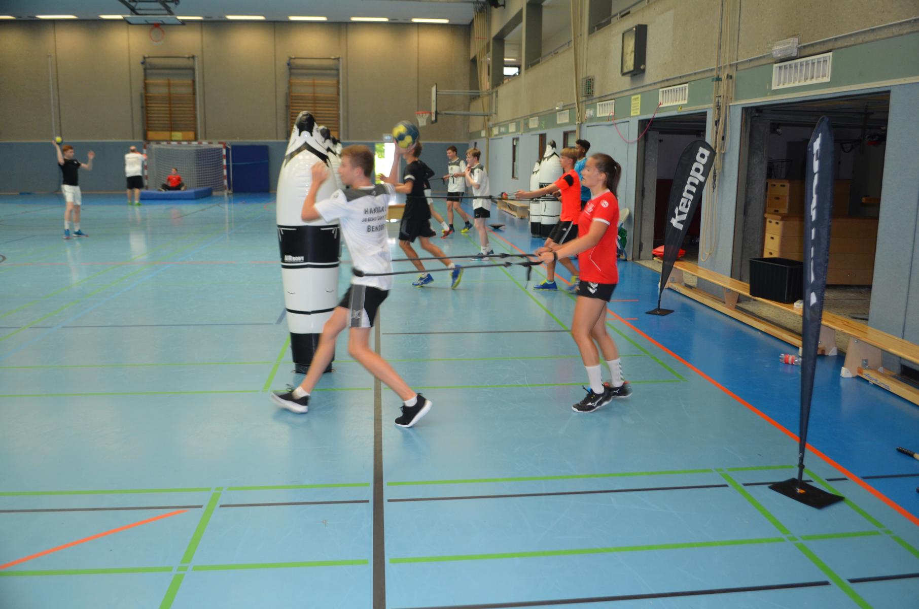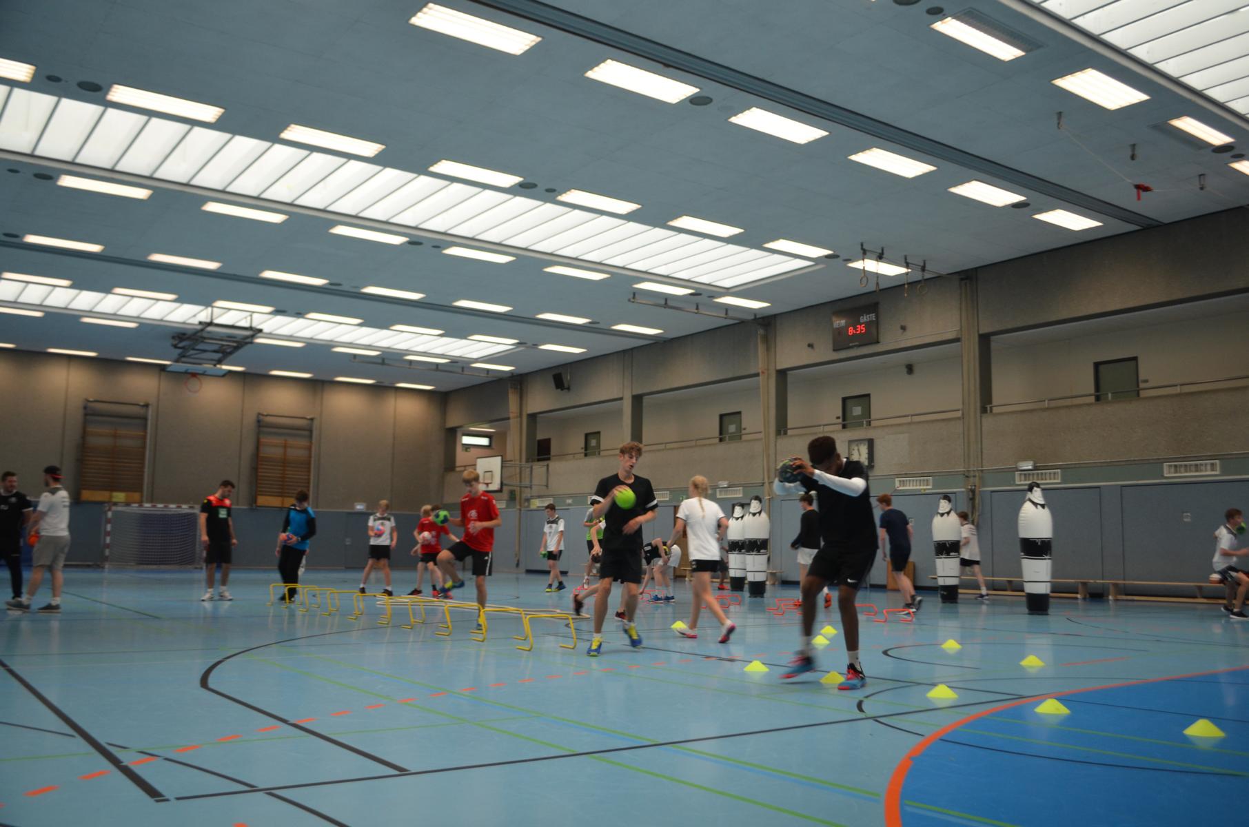 Der Jugendleiter von TS Bendorf hatte mich kurzfristig kontaktiert und nachgefragt, ob ich Interesse hätte, an dem Sommer-Handballcamp in Bendorf als Chef-Coach teilzunehmen. Bislang fand das Handballcamp in Bendorf (bei Koblenz) immer in den Herbstferien statt. Seit nunmehr 11 Jahren bin ich dort als Chef-Coach aktiv und wunderte mich, warum das Camp nun im Sommer stattfindet. Das kam so, weil die Kinder lange Zeit zum Nichtstun verdonnert wurden, da das Ostercamp Corona-bedingt ausfallen musste und die Kids einiges nachzuholen hätten. Da waren sie bei mir natürlich genau an der richtigen Adresse. Nichts hätte mich davon abhalten können, nach Bendorf zu fahren. Zwischen meinen beiden eigenen Sommer-Handballcamps, in Harleshausen vom 16.-20.08.21 und auf dem Sensenstein vom 23.-27.08.21 lagen genau die beiden freien Tage, an denen das Camp in Bendorf sein sollte, nämlich 21./22.08.21. Viele denken sofort, das ist doch zu viel Stress – das kann man nicht durchhalten. Ich bin ehrlich – ja, es bedeutet viel Stress, aber den Kindern und Jugendlichen zuliebe, nehme ich diesen gerne in Kauf. Entschädigt werde ich durch den Einsatz der Nachwuchshandballer/-handballerinnen, die den Handballsport genauso lieben wie ich selbst, die hungrig sind nach dem runden Spielgerät und nicht müde werden, immer mehr dazu zu lernen. Nach Bendorf reiste ich mit meinem Anhänger und allen spannenden und neuen Gerätschaften an. Zum Einsatz kommen gleich am 1. Tag die Jumping Expander für die schnelle Beinarbeit. Diese ist wichtig für die Abwehrarbeit. Als Helfer stehen mir viele Jugendtrainer vom TS Bendorf zur Seite und auch meine Trainings-Buddies, die wieder zum Einsatz kommen und an denen sich die Kids immer sehr erfreuen. Die teilnehmenden Torleute erhalten ein spezielles Programm und bekommen ihre Torwartaufgaben. Nach dem Mittagessen geht es nun um die Angriffsschulung. Es werden alle möglichen Kreuzbewegungen im Rückraum gelaufen mit Abschlüssen vom Kreis und von den Außenpositionen. Bei dieser Übung achte ich ganz besonders auf die korrekte Ausführung und es dauert auch seine Zeit, bis die Angriffsaktion sitzt. Wichtig dabei ist auch die Wurfgenauigkeit. Der Tag vergeht wie im Fluge und ich freue mich, bekannte Gesichter neben dem Spielfeld zu sehen. Nicht nur der Vorstand ist von meiner Arbeit sehr angetan, auch viele Eltern sind wieder gekommen und sind voll des Lobes für eine gelungene Trainingsgestaltung. Das ehrt mich sehr, dass ich auch nach 11 Jahren noch Begeisterung auslösen kann und bin voll Erwartung auf Tag 2.