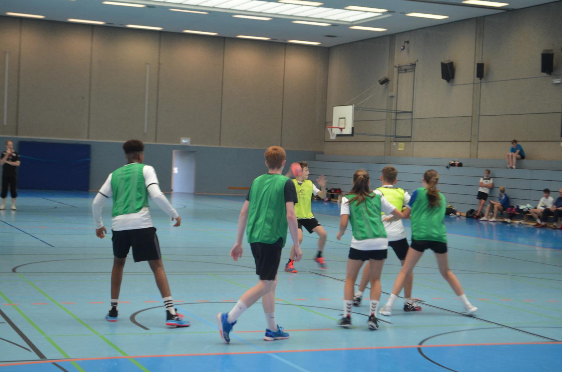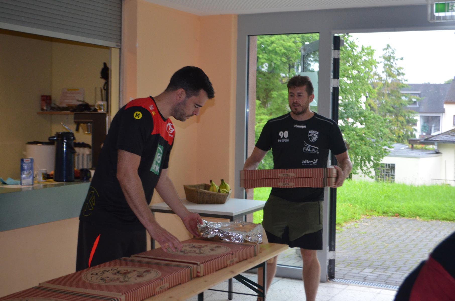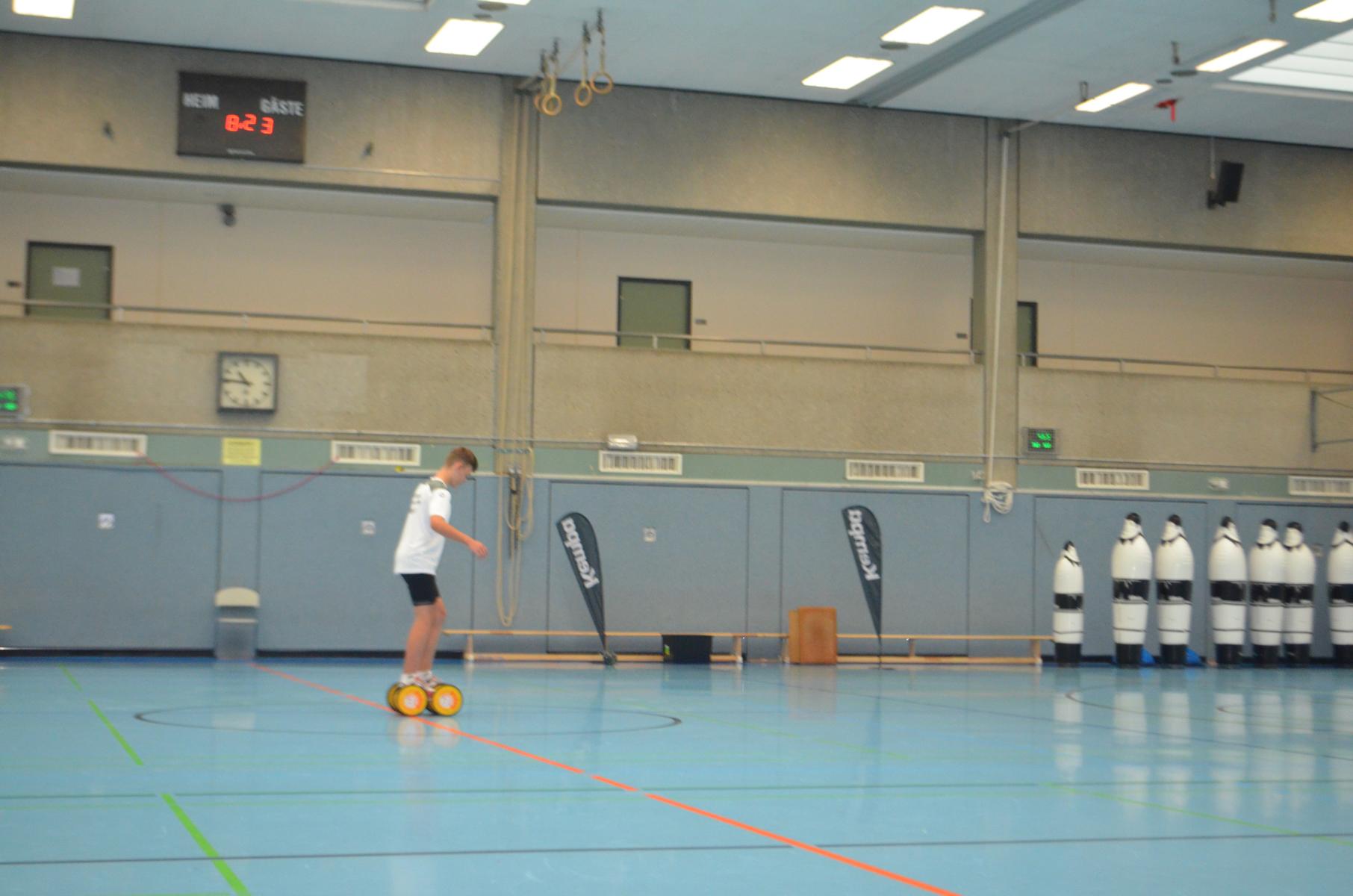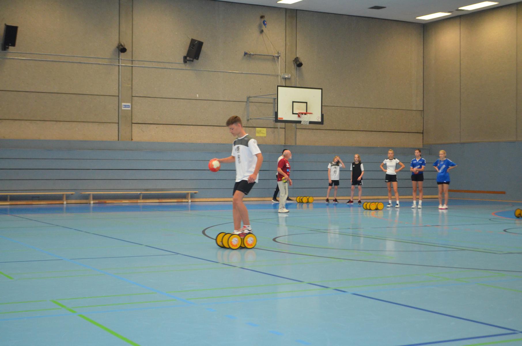 Am zweiten Tag des Handballcamps geht es gleich in der ersten Trainingseinheit um Koordination. Hier kommen Hürden, Reifen und Seile zum Einsatz, um verschiedene Schrittkombinationen zu trainieren. Auch darf die Koordinationsleiter nicht fehlen. Alle Muskelpartien werden dabei beansprucht. Ich freue mich über die Unterstützung von vielen Jugendtrainern sowie des Trainers von der 1. Mannschaft von TS Bendorf. Dieser bringt die Blackrolls zum Einsatz. Es wird genau erklärt, wie man damit umgehen soll und für was das gut ist. Sie sind z.B. ideal zur Verbesserung der Beweglichkeit und Behandlung schmerzhafter Muskelverhärtungen. Im Anschluss übernehme ich die nächste Einheit mit den Pedalos. Klar braucht es seine Zeit, dieses tückische Gerät zu beherrschen, aber sobald man den „Dreh raushat“, kann man weitere Steigerungen einbauen. Der Handball wird hinzugenommen und jetzt versucht, während des Pedalofahrens den Ball zu prellen, zu passen, zu fangen etc. Trainiert wird hier an der Körperbeherrschung und an der Balance. Gegenseitiges Helfen erleichtert die Aufgaben und schon bald klappen die Übungen richtig gut. Danach soll das Abwehrverhalten im Spiel 1 gegen 1 mit Körperkontakt in drei Trainingsgruppen mit dynamischem Heraustreten geübt werden. Hier geht es ordentlich zur Sache und die Mädels schonen die Jungs genauso wenig, wie umgekehrt. Abwehrarbeit in kleinen Gruppen ist wichtig für die Abstimmung im Abwehrverband. Nachdem alle gut aufgewärmt und vorbereitet sind, wird die 3:2:1-Deckung geübt. O ja, diese Abwehrformation verlangt eine gute Beinarbeit und Kondition. Das Zusammenspiel bzw. die Absprache zwischen Vorgezogenem und Abwehrmitte muss gut funktionieren, um entstandene Lücken schnell zu schließen und bei Übergängen des Gegners muss das Übergeben/Übernehmen perfekt klappen. Durch verschiedene Komplexübungen, kann man dieses Abwehrsystem gut trainieren. Zur Freude der Kids stehen nun Wurfserien von verschiedenen Positionen auf dem Programm. Nach dem Mittagessen werden dann die Mannschaften gebildet, um unser traditionelles Abschlussturnier zu starten. Es ist toll zu sehen, mit welcher Begeisterung alle dabei sind. Ich kann von der Seite zuschauen und bin sehr stolz, wie schnell diese Jugendlichen ihre eingeübte Wurftechnik und die hart trainierte Abwehrarbeit sogleich umsetzen. So, nun heißt es, Abschied nehmen. Zuvor, wie es sich gehört, packen alle gemeinsam meine Trainingsgeräte in den Anhänger. Es fällt mir jedes Mal schwer loszufahren, aber dieses Mal weiß ich ja, dass bis zum nächsten Wiedersehen nicht viel Zeit vergehen wird, denn schon im Herbst, vom 22.-24.10.21 komme ich wieder, wenn es heißt: Power-Handballcamp in Bendorf mit Chef-Coach Iljo Duketis. – Also: bis bald!