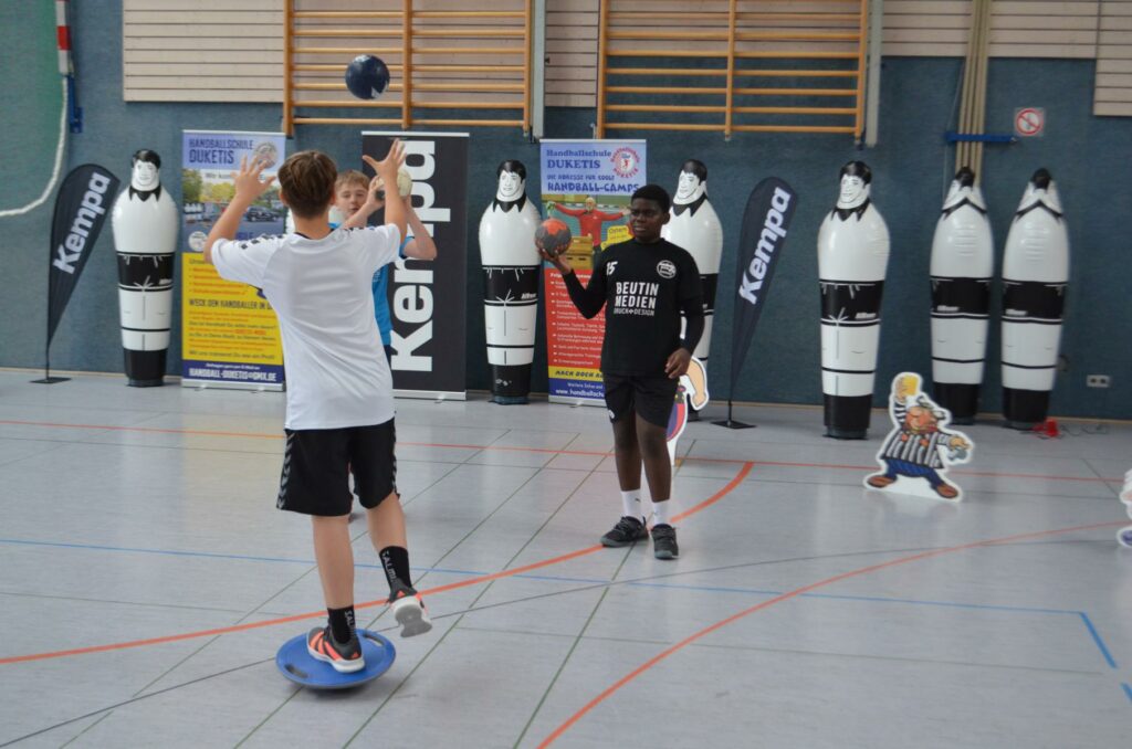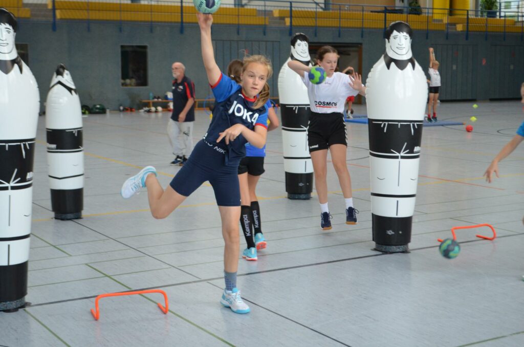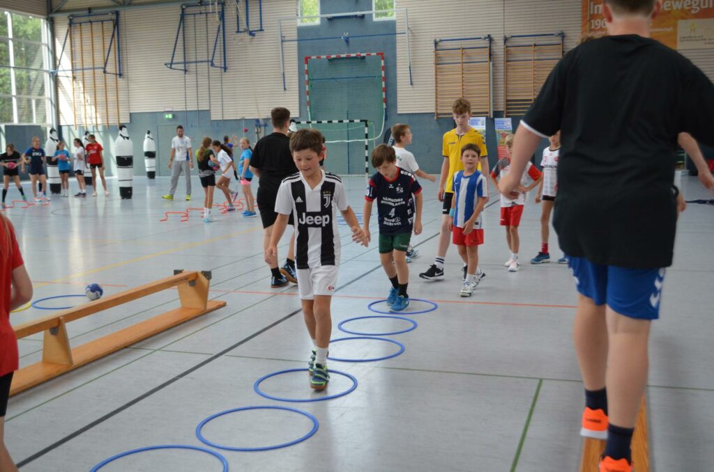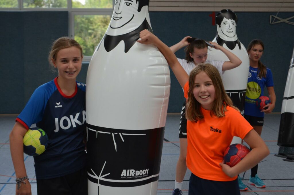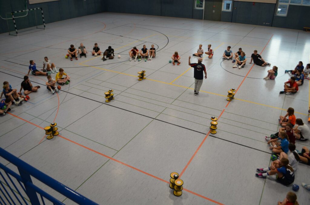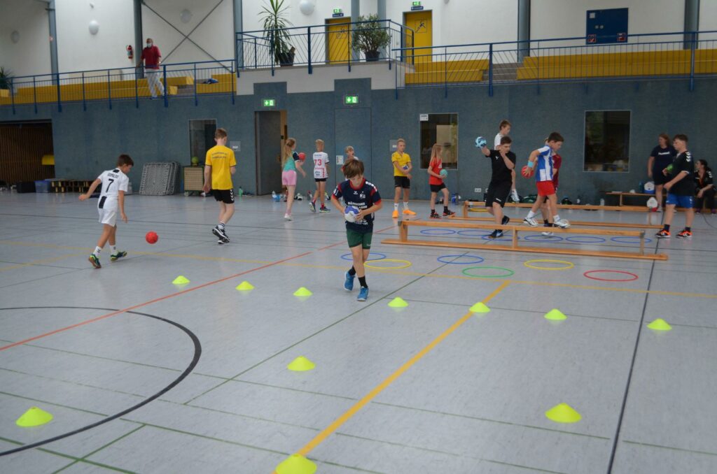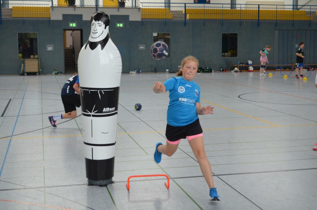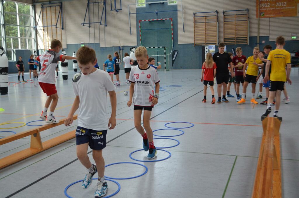 Es ist gerade 6:30 Uhr am Morgen und es geht schon in die Sporthalle. Ja, auch Euer Kind ist dabei! Alle sind nach dem Wecken wirklich aufgestanden und pünktlich erschienen – da staunt Ihr, was? Die Kinder können kaum ihren Augen trauen: da sind bereits die Bänke zu einem Parcours aufgebaut und diese sollen mit verschiedenen Arten von Übungen überwunden werden. Die Kids sind noch skeptisch und bedürfen weiterer Motivation. Also sage ich, das ist wichtig, um den Kreislauf in Schwung zu bringen. Das funktioniert, sie laufen los. Aber das ist noch lange nicht alles, da stehen ja auch schon die Pedalos bereit, um die Balance am frühen Morgen zu trainieren. „Schön und gut, aber was denn jetzt noch? Zusätzlich mit Bällen jonglieren? Unser Trainer wird auch immer witziger…“. O ja, ich glaube, ich lasse die Kids bald im Zirkus auftreten. Das wäre eine tolle und sehr lustige Vorführung. Mittlerweile denken die Kinder: „Was haben sich unsere Eltern nur dabei gedacht, uns hier anzumelden?“ Gottseidank endet die erste Trainingseinheit des Tages ohne Verletzte! Schon ist es Zeit für die 2. Trainingseinheit. Jetzt werden alle Arten von Zweikämpfen mit Kontakt geübt. Es geht ordentlich zur Sache – auch wenn es mal wehtut. Lennert kneift schon die Augen zu, um mit allerletzter Kraft dagegen zu halten. Vorbildlich! Handball lebt von Zweikämpfen und darum wird das auch viel und ausdauernd geübt. Und wieder denken die Kids: „In welchem Camp sind wir eigentlich gelandet? In einem Boxercamp oder was?“. Irgendwann kommen jetzt auch Handbälle ins Spiel und die Gesichtsmimiken der Nachwuchshandballer/innen werden etwas freundlicher: „Ahh, so verkehrt sind wir hier doch nicht!“ Irgendwann müssen Ufos in der Sporthalle gelandet sein, denn genau so sieht es plötzlich aus: da liegen komische große, blaue Bälle auf dem Boden, aber irgendetwas stimmt damit nicht, jemand hat sie in der Mitte durchgeschnitten. „Und Trainer verlangt jetzt, dass wir uns da drauf stellen und ausbalancieren sollen. Das ist gar nicht so einfach.“ Das Nachmittagstraining ist da schon eher nach dem Geschmack der Kids. Wir üben Sprungwürfe, Täuschungen und Torwürfe. Doch was machen die Mädchen auf der anderen Seite? Sie haben die Trainings-Buddies entdeckt und sich schockverliebt! Sie posieren und knuddeln die Buddies, kein Wunder, die können sich auch nicht wehren! Beim heutigen Programm war wirklich für jeden was dabei und vieles hatte sogar mit Handball zu tun. „Was sollen wir machen, unser Trainer meint, ein Handballspieler muss alles können. – Drum machen wir auch alles mit!“ Die Kids brauchen sich gar nicht beschweren, sie dürfen sogar schwimmen gehen, damit sie bei Laune bleiben. Als sie schon dachten, sich nach dem Abendessen ein wenig ausruhen zu können, reiße ich sie jäh aus ihren Träumen: Es geht weiter im Programm. Und es wird spannend, denn ich habe einen Koffer mitgebracht und hole nun kleine Buzzer-Lichter heraus, die in der Lage sind, in verschiedenen Farben zu blinken. „Machen wir jetzt eine Party?“ Nein – leider schon wieder falsch gedacht. Jetzt geht es um Reaktionsschnelligkeit. Die Buzzer-Lichter werden in der Halle etwas verteilt. Über Handy – das übernimmt Hermi – werden sie gestartet und gelenkt. Es treten immer zwei Kids gegeneinander im Wettkampf an. Jeder bekommt eine Farbe gesagt, die er beim Aufleuchten so schnell es geht, berühren muss. Ich habe ein wenig Angst um die Buzzer-Lichter – so mancher haut so stark drauf, dass ich befürchte, sie überleben dieses Training nicht…. „Wir dachten, wir sollen so auf die Lichter hauen, dass sie nicht mehr blinken.“ Ja, ja, die glauben auch, sie könnten mich reinlegen. Sie wissen ganz genau, hier wird die Beinarbeit trainiert – schnelle Beine – die braucht ein Handballer! Ich sage Euch, hier kommt garantiert keine Langeweile auf. Die Kids stöhnen: „Hoffentlich kommt unser Trainer morgen nicht auf die Idee, wir sollen über glühende Kohlen laufen.“ Gar keine schlechte Idee, denke ich, aber ich will nicht riskieren, dass die Kinder ihre Eltern anrufen, damit sie aus diesem Handballcamp gerettet werden. Wie gut und geschickt von mir, die Handys vorher alle einzusammeln. Spätestens jetzt weiß jeder, warum.