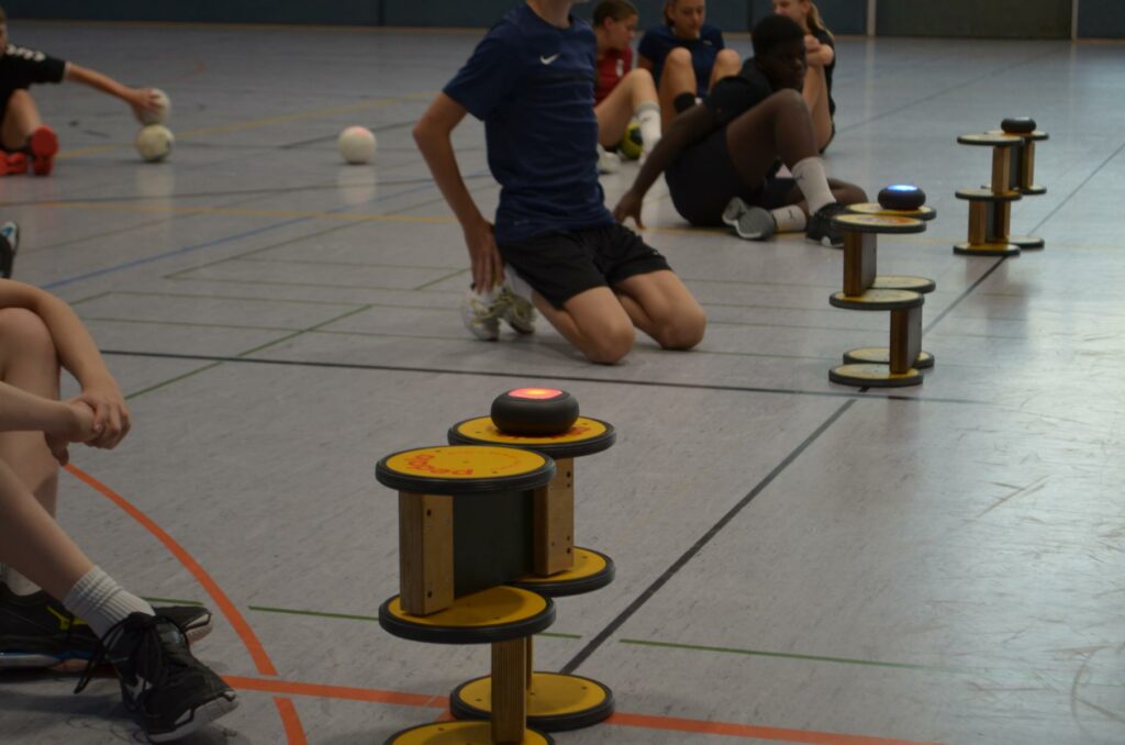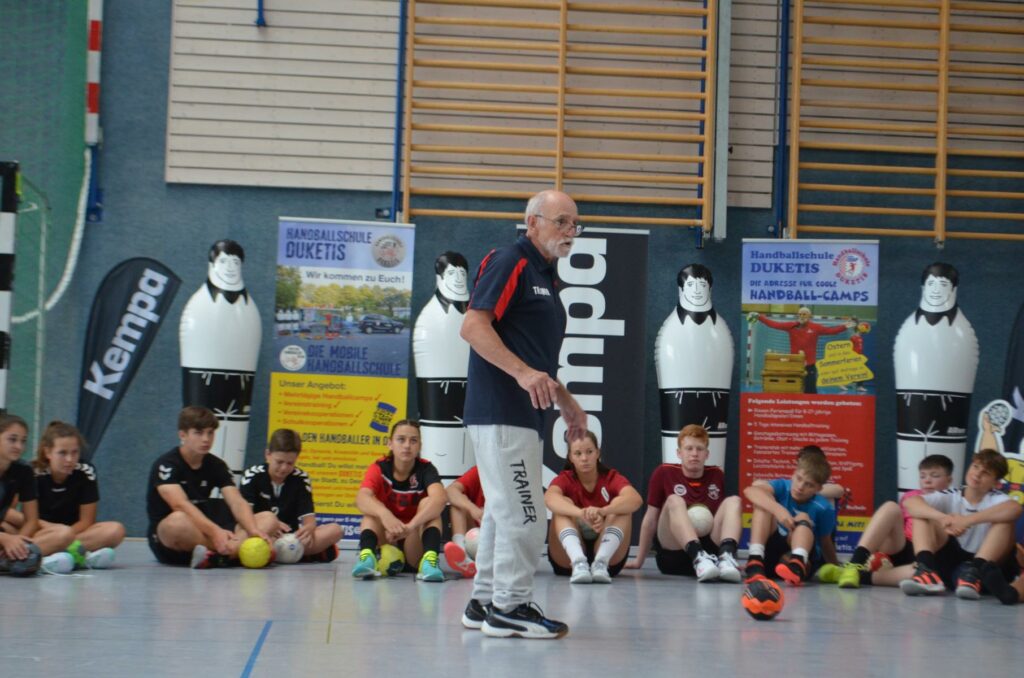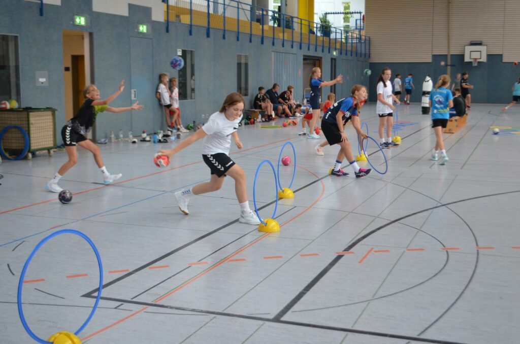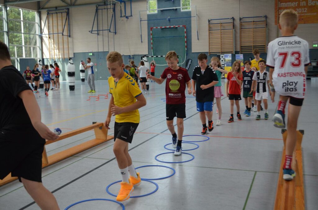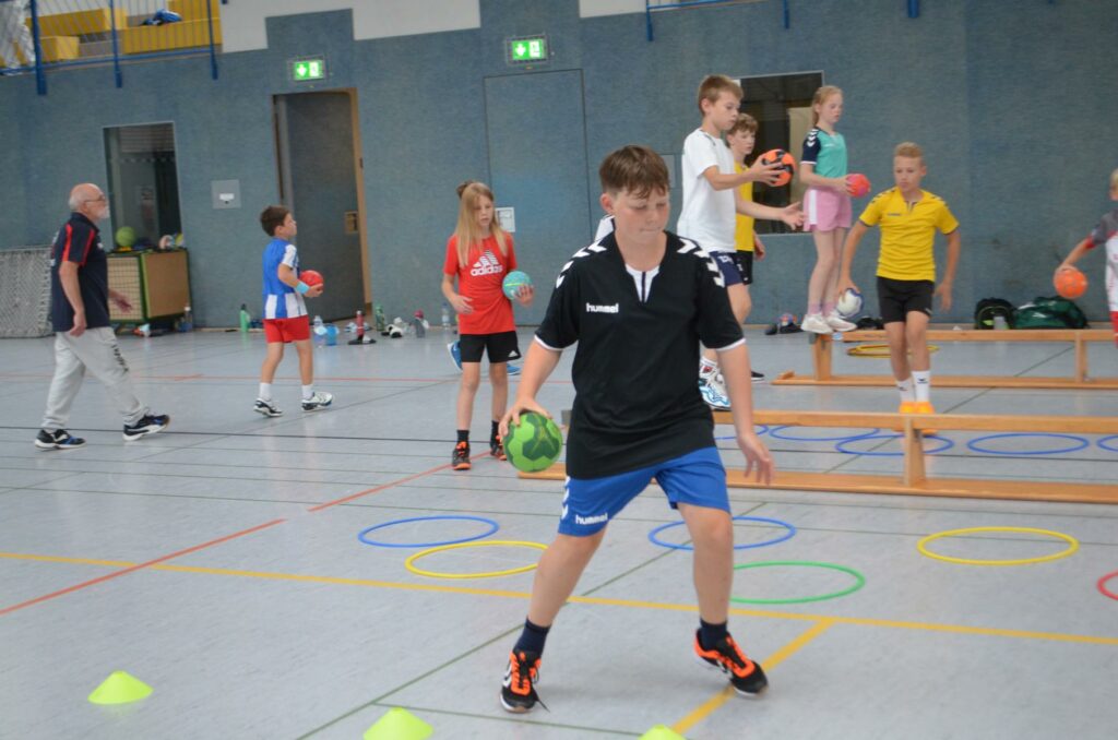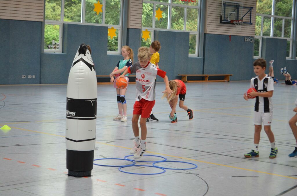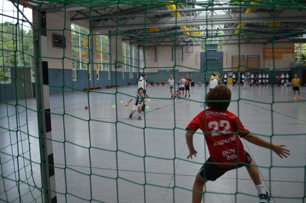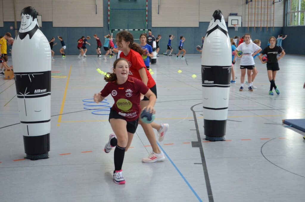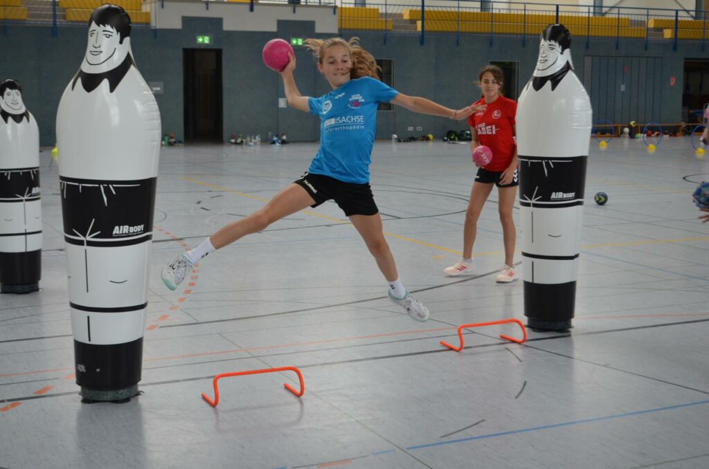Es ist gerade 6:30 Uhr am Morgen und es geht schon in die Sporthalle. Ja, auch Euer Kind ist dabei! Alle sind nach dem Wecken wirklich aufgestanden und pünktlich erschienen – da staunt Ihr, was? Die Kinder können kaum ihren Augen trauen: da sind bereits die Bänke zu einem Parcours aufgebaut und diese sollen mit verschiedenen Arten von Übungen überwunden werden. Die Kids sind noch skeptisch und bedürfen weiterer Motivation. Also sage ich, das ist wichtig, um den Kreislauf in Schwung zu bringen. Das funktioniert, sie laufen los. Aber das ist noch lange nicht alles, da stehen ja auch schon die Pedalos bereit, um die Balance am frühen Morgen zu trainieren. „Schön und gut, aber was denn jetzt noch? Zusätzlich mit Bällen jonglieren? Unser Trainer wird auch immer witziger…“. O ja, ich glaube, ich lasse die Kids bald im Zirkus auftreten. Das wäre eine tolle und sehr lustige Vorführung. Mittlerweile denken die Kinder: „Was haben sich unsere Eltern nur dabei gedacht, uns hier anzumelden?“ Gottseidank endet die erste Trainingseinheit des Tages ohne Verletzte! Schon ist es Zeit für die 2. Trainingseinheit. Jetzt werden alle Arten von Zweikämpfen mit Kontakt geübt. Es geht ordentlich zur Sache – auch wenn es mal wehtut. Lennert kneift schon die Augen zu, um mit allerletzter Kraft dagegen zu halten. Vorbildlich! Handball lebt von Zweikämpfen und darum wird das auch viel und ausdauernd geübt. Und wieder denken die Kids: „In welchem Camp sind wir eigentlich gelandet? In einem Boxercamp oder was?“. Irgendwann kommen jetzt auch Handbälle ins Spiel und die Gesichtsmimiken der Nachwuchshandballer/innen werden etwas freundlicher: „Ahh, so verkehrt sind wir hier doch nicht!“ Irgendwann müssen Ufos in der Sporthalle gelandet sein, denn genau so sieht es plötzlich aus: da liegen komische große, blaue Bälle auf dem Boden, aber irgendetwas stimmt damit nicht, jemand hat sie in der Mitte durchgeschnitten. „Und Trainer verlangt jetzt, dass wir uns da drauf stellen und ausbalancieren sollen. Das ist gar nicht so einfach.“ Das Nachmittagstraining ist da schon eher nach dem Geschmack der Kids. Wir üben Sprungwürfe, Täuschungen und Torwürfe. Doch was machen die Mädchen auf der anderen Seite? Sie haben die Trainings-Buddies entdeckt und sich schockverliebt! Sie posieren und knuddeln die Buddies, kein Wunder, die können sich auch nicht wehren! Beim heutigen Programm war wirklich für jeden was dabei und vieles hatte sogar mit Handball zu tun. „Was sollen wir machen, unser Trainer meint, ein Handballspieler muss alles können. – Drum machen wir auch alles mit!“ Die Kids brauchen sich gar nicht beschweren, sie dürfen sogar schwimmen gehen, damit sie bei Laune bleiben. Als sie schon dachten, sich nach dem Abendessen ein wenig ausruhen zu können, reiße ich sie jäh aus ihren Träumen: Es geht weiter im Programm. Und es wird spannend, denn ich habe einen Koffer mitgebracht und hole nun kleine Buzzer-Lichter heraus, die in der Lage sind, in verschiedenen Farben zu blinken. „Machen wir jetzt eine Party?“ Nein – leider schon wieder falsch gedacht. Jetzt geht es um Reaktionsschnelligkeit. Die Buzzer-Lichter werden in der Halle etwas verteilt. Über Handy – das übernimmt Hermi – werden sie gestartet und gelenkt. Es treten immer zwei Kids gegeneinander im Wettkampf an. Jeder bekommt eine Farbe gesagt, die er beim Aufleuchten so schnell es geht, berühren muss. Ich habe ein wenig Angst um die Buzzer-Lichter – so mancher haut so stark drauf, dass ich befürchte, sie überleben dieses Training nicht…. „Wir dachten, wir sollen so auf die Lichter hauen, dass sie nicht mehr blinken.“ Ja, ja, die glauben auch, sie könnten mich reinlegen. Sie wissen ganz genau, hier wird die Beinarbeit trainiert – schnelle Beine – die braucht ein Handballer! Ich sage Euch, hier kommt garantiert keine Langeweile auf. Die Kids stöhnen: „Hoffentlich kommt unser Trainer morgen nicht auf die Idee, wir sollen über glühende Kohlen laufen.“ Gar keine schlechte Idee, denke ich, aber ich will nicht riskieren, dass die Kinder ihre Eltern anrufen, damit sie aus diesem Handballcamp gerettet werden. Wie gut und geschickt von mir, die Handys vorher alle einzusammeln. Spätestens jetzt weiß jeder, warum.