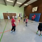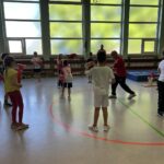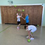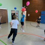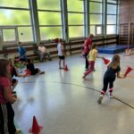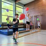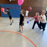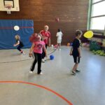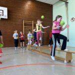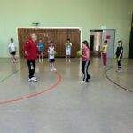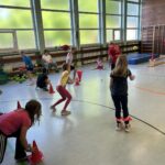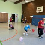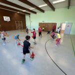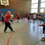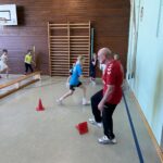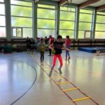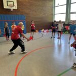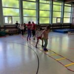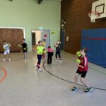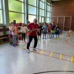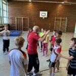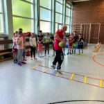 Nach dem ersten Schnuppertraining im letzten Jahr kam von der Schule im Erlenhof die erneute Anfrage, ob man auch zum Abschluss dieses Schuljahres noch einmal solch ein Schnuppertraining durchführen könnte. Da die Handballschule DUKETIS seit einem Jahr eine Kooperation mit dem Verein HSC Zierenberg hat, stand nach dem Anruf von Jugendleiter Leonard diesem Vorhaben natürlich nichts im Wege. Ich freue mich, dass meine Arbeit mit Kindern so geschätzt wird und meine Art mit Kindern zu arbeiten gut ankommt. Schon früh am Morgen mache ich mich mit meiner mobilen Handballschule auf den Weg nach Ehlen. Meine beiden Assistenten vom HSC Zierenberg, Matty und Leonard, stehen mir unterstützend zur Seite. Heute soll jeweils ein 90minütiges Schnuppertraining für 2 Drittklässlerklassen durchgeführt werden. Bevor die Schüler in der doch recht kleinen Turnhalle ankommen, bauen wir zunächst einen Koordinations-Parcours auf. Anschließend gilt es, dreißig Luftballons aufzupusten und für die erste Gruppe Drittklässler bereitzuhalten. Nach dem Aufwärmen mit Bällen wird nun der Koordinations-Parcours bewältigt. Nach kurzer Trinkpause kommen dann die Luftballons ins Spiel. Jedes Kind bekommt zwei Luftballons und muss versuchen, diese so lange es geht in der Luft zu bewegen, ohne dass sie den Boden berühren. Das ist eine anspruchsvolle und anstrengende Übung, wo auch eine gute Reaktion gefragt ist. Dennoch, eine Steigerung ist immer möglich und darum nehmen wir die Luftballons nun mit zum Koordinations-Parcours, wo die hoch motivierten Kids die schwere Aufgabe wirklich gut meistern. Die Luftballons werden dann zur Seite gelegt, denn jetzt kommen Tennisbälle zum Einsatz. Jedes Kind darf probieren, mit 2 Tennisbällen zu jonglieren. Danach werden die Kinder in Zweiergruppen eingeteilt und schon geht´s los. Die Tennisbälle werden gleichzeitig zum Partner geworfen und man muss versuchen, den vom Partner geworfenen Ball mit dem Hütchen aufzufangen. Hier ist Teamgeist und Timing gefragt. Am Ende werden noch Übungen durch die Koordinationsleiter gemacht. Hier brauchen die Kinder ein Gefühl für Rhythmus und schnelle Beine. Allen hat es scheinbar Spaß gemacht, denn alle haben super trainiert und alles gegeben. Zufrieden geht die 1. Drittklässlerklasse nun zum Unterricht. Nach kurzer Pause für uns kommt schon die 2. Drittklässlerklasse, um ebenfalls das 90minütige Training durchzuführen.