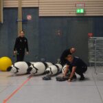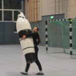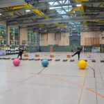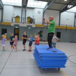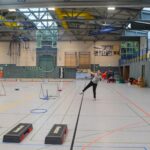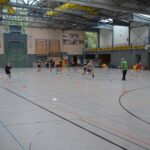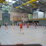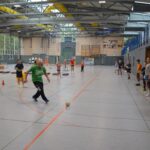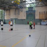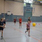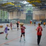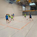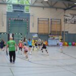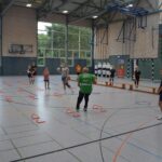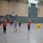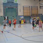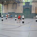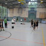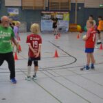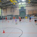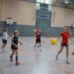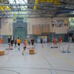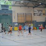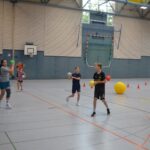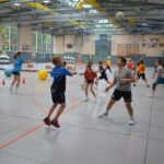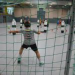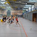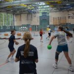In der Freizeit zwischen Mittag und Nachmittagstraining werden die Kinder kreativ – manche lassen sich Frisuren wie ihre Idole machen, andere genießen das schöne Wetter draußen im Park oder auf dem Spielplatz. Ein lauter Pfiff – und ich muss nichts mehr sagen: Alle sind schon auf dem Weg in die Halle. Das Nachmittagstraining beginnt wieder mit einem kleinen Aufwärmprogramm und Staffelspielen. Anschließend stehen Technikübungen auf dem Plan. Zuerst das Kreuzen – alles in Bewegung. Dann geht es um das Stoßen in die Nahtstellen. Die „Buddies“ stehen jetzt in der Abwehr, und wir starten das Wurftraining mit Täuschbewegungen – zur Hand und gegen die Hand. Es folgt eine Serie von 15 Würfen mit drei verschiedenen Wurftechniken: Sprungwurf, Täuschung zur Hand und Überzieher. Die Belastung ist hoch, Technik und Dynamik müssen passen – aber was wollen wir? Tore werfen! Die Gruppe ist ehrgeizig, feuert sich gegenseitig an und zieht mit.