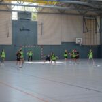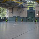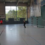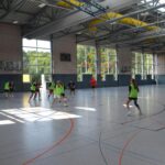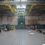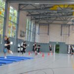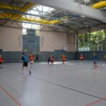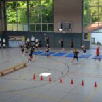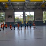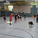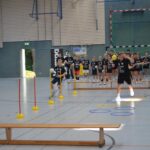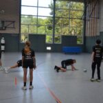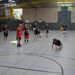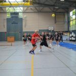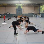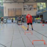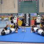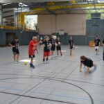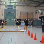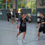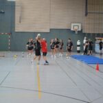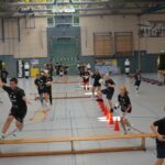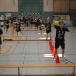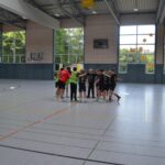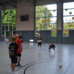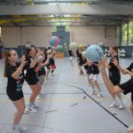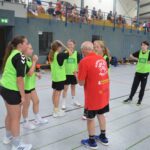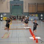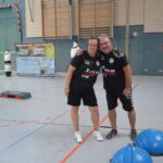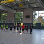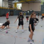 Jetzt steht die letzte Trainingseinheit auf dem Plan. Zum Aufwärmen gibt es Partnerübungen, die nicht nur Arme und Beine, sondern auch Lachmuskeln beanspruchen. Anschließend folgt ein knallharter Handballparcours, der von jedem alles fordert. Spätestens nun merkt man, dass vier Tage voller Training doch ihre Spuren hinterlassen haben. Jetzt geht´s ab zum Fotoshooting. Ich schiebe die Teens von rechts nach links von vorn nach hinten – so lange, bis das Bild perfekt ist. Nun werden die Geräte ordentlich in die Rollwagen gepackt und die AirBuddies sind so glücklich, dass die Luft rausgelassen wird und sie sich ausruhen dürfen. Sie wurden in den letzten Tagen sehr beansprucht, angerempelt und sogar umgestoßen. Davon müssen sie sich bis zum Herbstcamp erst einmal erholen. Zur Belohnung für das schnelle Abbauen und Aufräumen der Geräte gibt es jetzt – Trommelwirbel – das große Abschlussturnier! Die Tribüne ist voll, die Stimmung großartig, und jeder hat nur ein Ziel: zeigen, was man gelernt hat. Es wird gekämpft, gepasst, geworfen und gejubelt. Die Teens hauen großartige Spielzüge raus, als hätten sie heimlich nachts noch extra dafür trainiert.