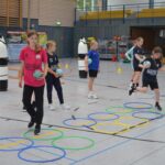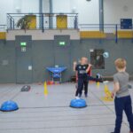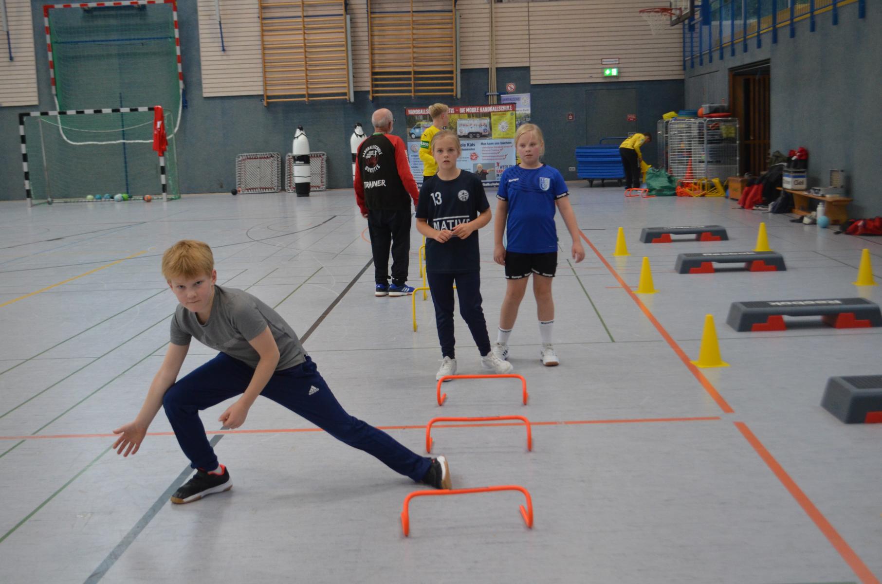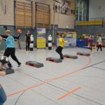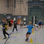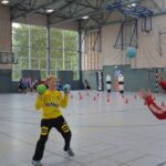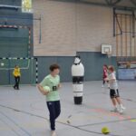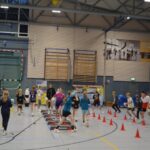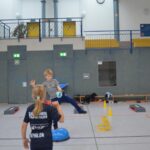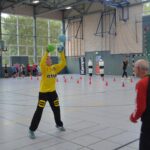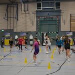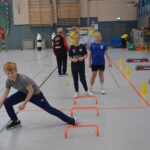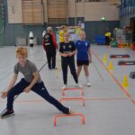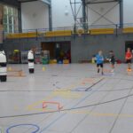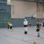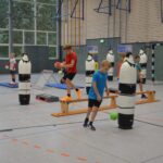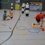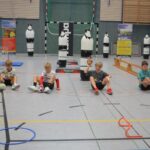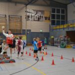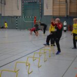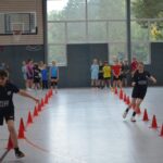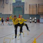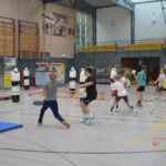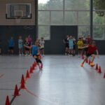 Bei Janka steht Schnelligkeit im Fokus – Staffelspiele mit viel Koordination. Milan übt mit der Obelix-Gruppe Angriffsschulung: erst Pässe mit Stoßbewegung, dann Kreuzbewegungen bis zum Torabschluss. Die Stimmung ist ausgelassen, jeder Treffer wird laut bejubelt.