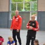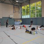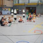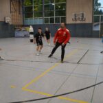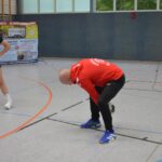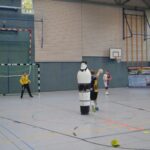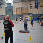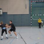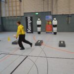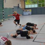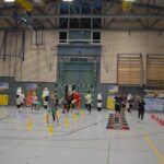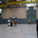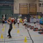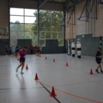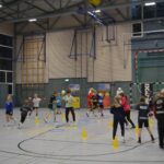 In der Halle warten Janka und Milan bereits. Janka legt den Schwerpunkt auf athletische Schulung mit vielen kleinen Spielen, um Abwechslung und Motivation zu fördern. Milan trainiert Täuschbewegungen mit und ohne Ball sowie Durchbrüche am Kreis. Danach steht die Abwehrarbeit im 1-gegen-1 über 2-gegen-2 bis zum 3-gegen-3 auf dem Plan. Das Zusammenspiel in der Abwehr funktioniert noch nicht wie gewünscht – die Absprache fehlt, das Spiel ist zu passiv, und der Gegner hat zu viel Zeit für seine Aktionen. Hier müssen wir deutlich dynamischer werden.