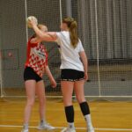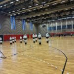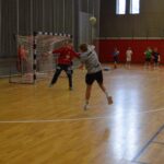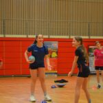 Nach einer kurzen Trinkpause (also drei Schluck und weiter geht’s) arbeiten wir an individueller, positionsspezifischer Wurftechnik. Hier braucht man Technik, Timing und die richtige Entscheidung. Und bitte nicht erst überlegen, wenn der Ball schon beim Gegner ist. Durch Kreuzbewegungen wird der Durchbruch zum Kreis gesucht.
