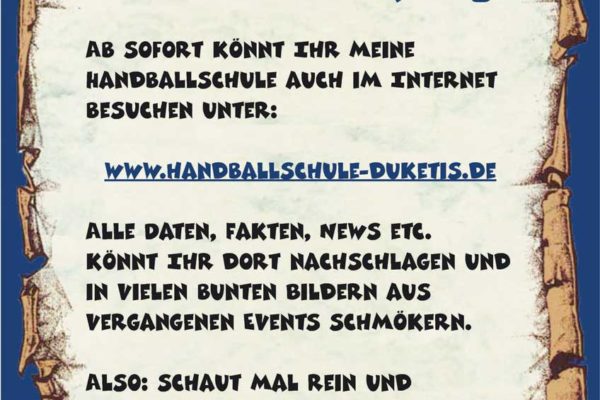 Die lange Wartezeit ist vorbei. Die Webseite der Handballschule Duketis ist online. Hier findet ihr alles Infos rund um unsere Arbeit, die Handballcamps, Termine…
